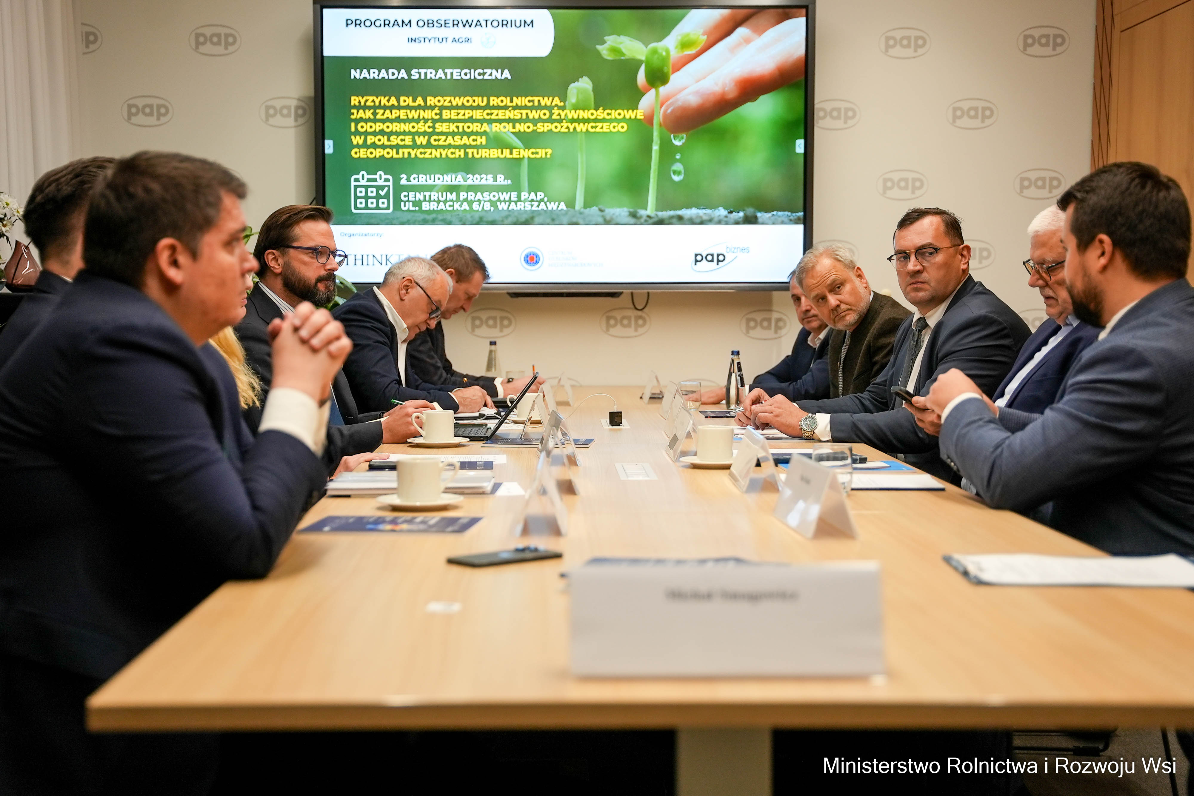 W siedzibie Polskiej Agencji Prasowej w Warszawie odbyły się dzisiaj konsultacje społeczne w formie narady strategicznej, dotyczące długofalowych działań wzmacniających bezpieczeństwo żywnościowe i odporność sektora rolno-spożywczego. Gościem specjalnym dyskusji był minister Stefan Krajewski.