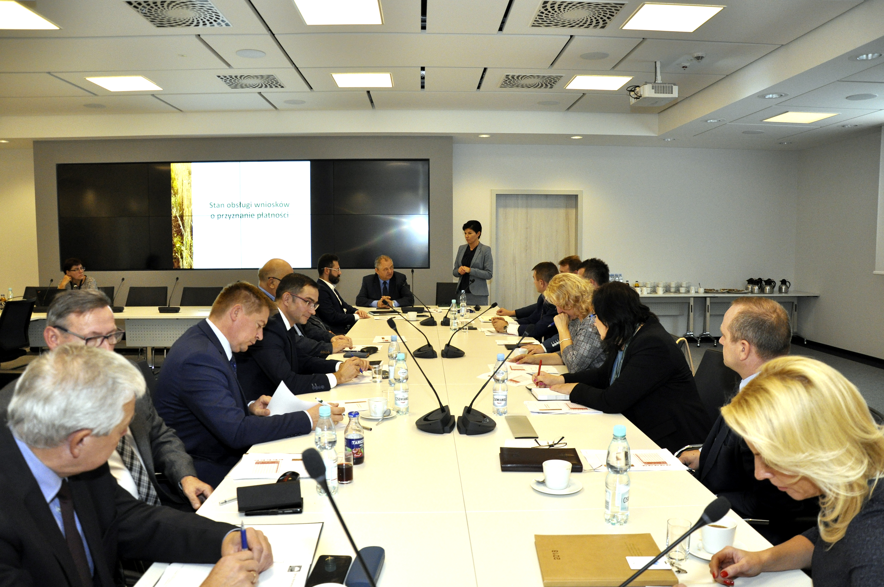 Omówione zostały kwestie związane z realizacja płatności obszarowych z kampanii 2017 roku oraz stan obsługi wniosków obszarowych z kampanii 2018 roku pod kątem przygotowania Agencji do realizacji od dnia 16 października 2018 roku płatności zaliczkowych na poczet płatności bezpośrednich oraz realizacji płatności PROW. Ponadto poruszone zostały najbardziej kluczowe problemy związane rozpatrzeniem wniosków suszowych i realizacją pomocy dla rolników, którzy ponieśli straty spowodowane suszą.