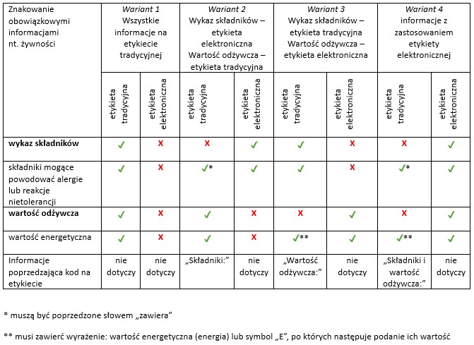 - obowiązkowe skrócone informacje na etykiecie tradycyjnej i obowiązkowe informacje na stronie WWW możliwe do odczytania np. za pomocą smartfona