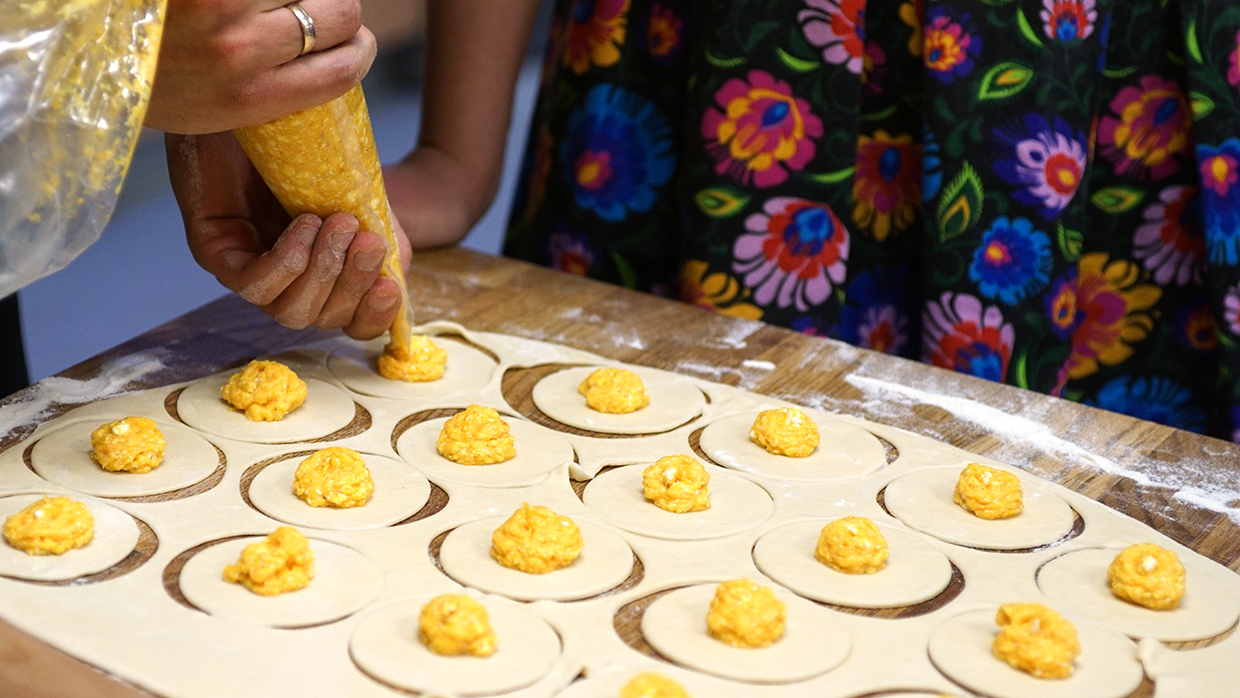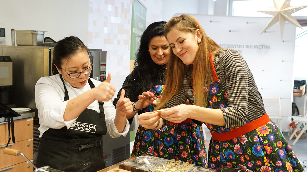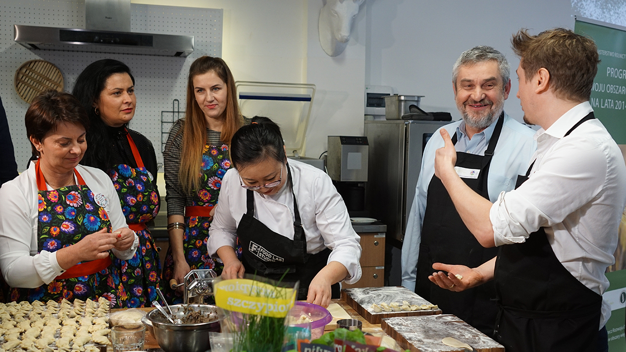 Kulminacją dzisiejszego wydarzenia były warsztaty kulinarne, podczas których minister Ardanowski wraz z profesorem Dumanowski i dyrektor generalną MRiRW Moniką Rzepecką wzięli udział m.in. w lepieniu tradycyjnych uszek.