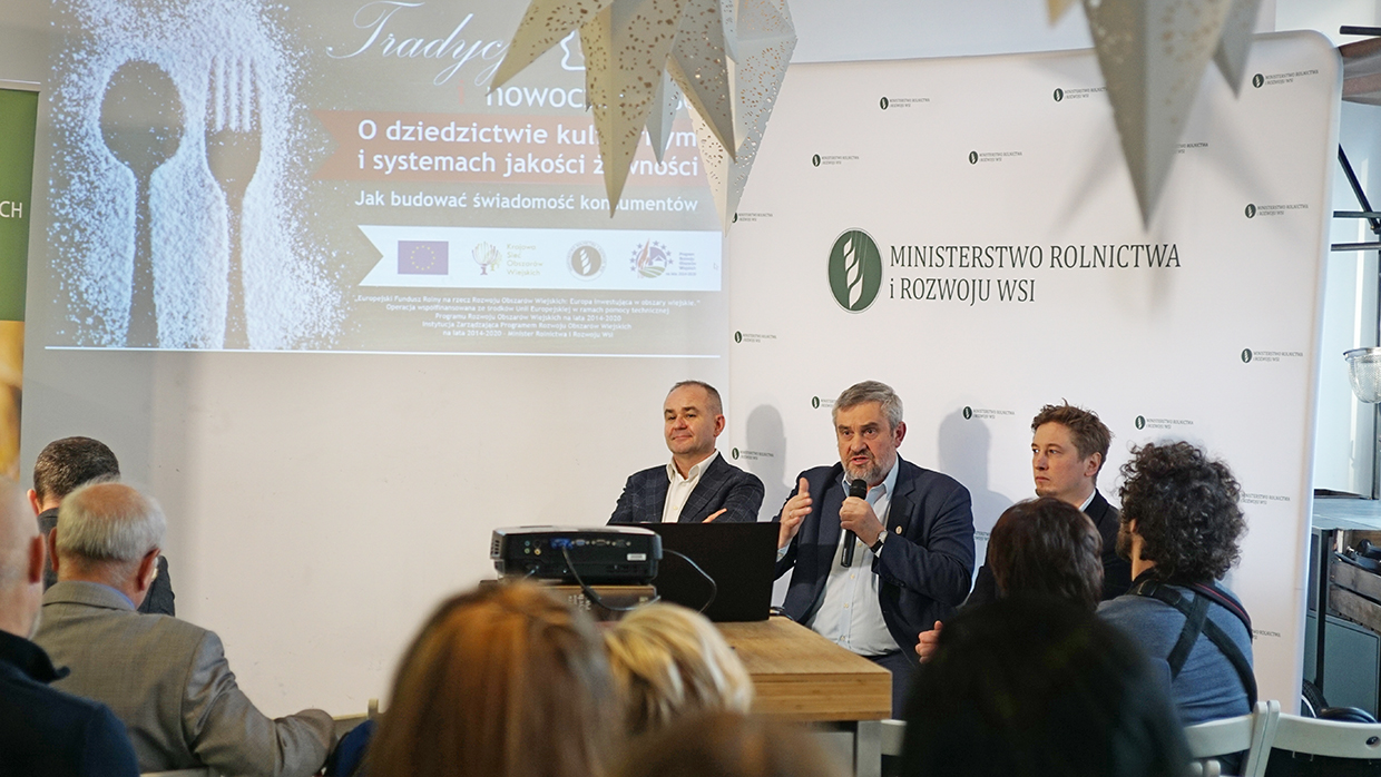 O dziedzictwie kulinarnym i systemach jakości żywności dyskutowali dziś minister rolnictwa i rozwoju wsi Jan Krzysztof Ardanowski, dr hab. Jarosław Dumanowski prof. Uniwersytetu Mikołaja Kopernika w Toruniu oraz prezes Fundacji Szkoła na widelcu Grzegorz Łapanowski.