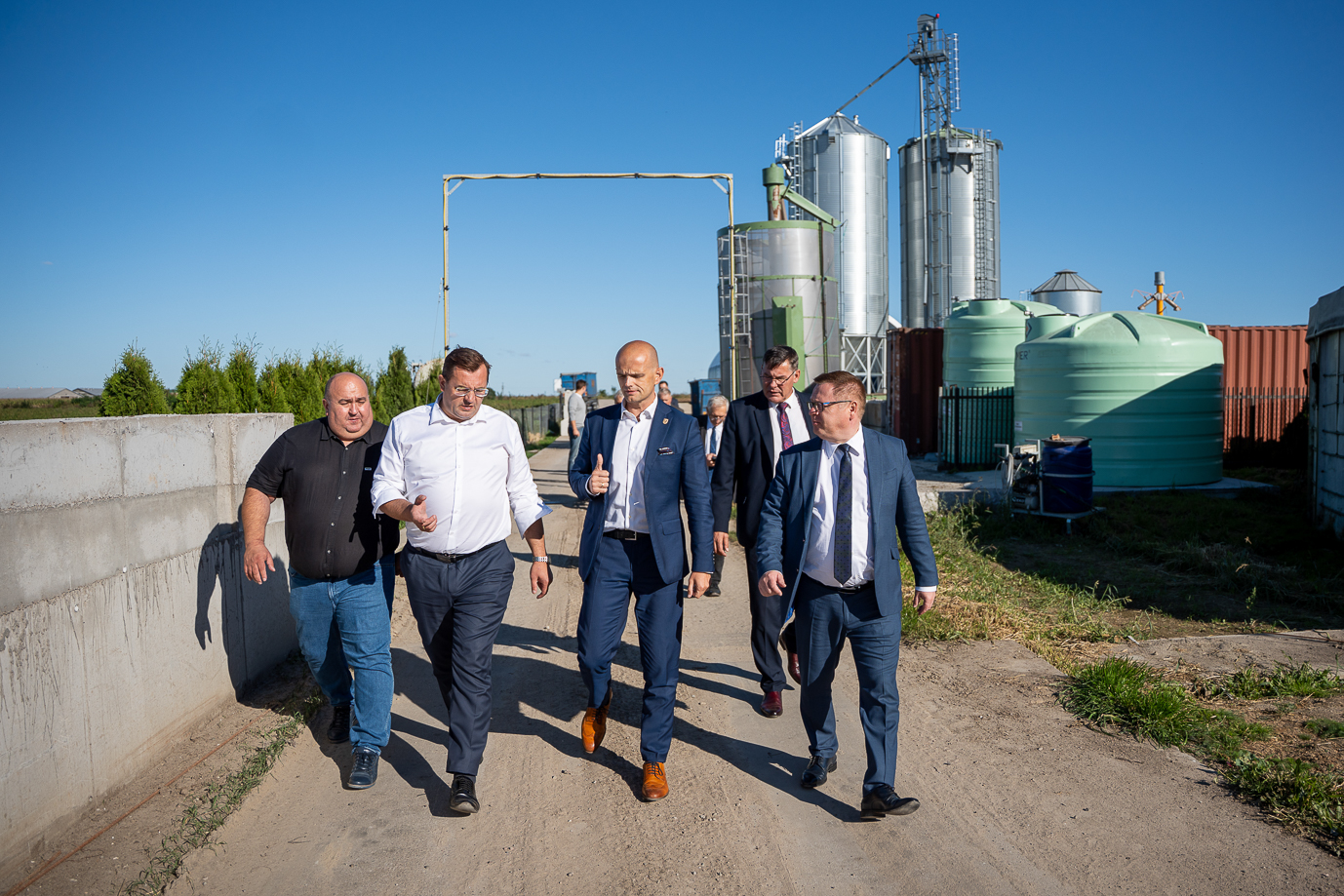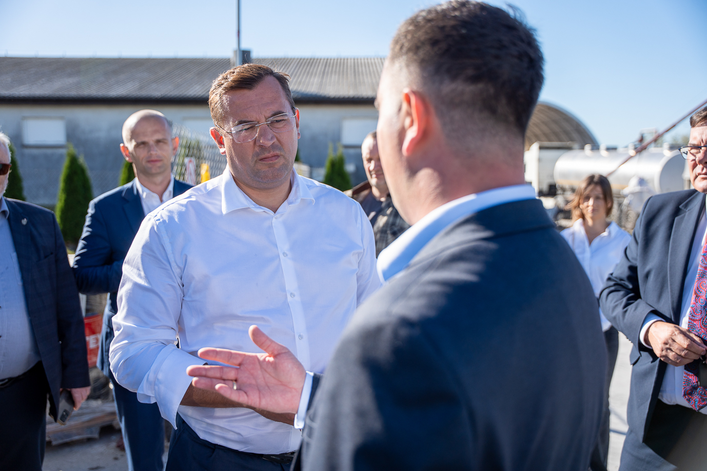 Wizyta na terenie powiatu płockiego była także okazją do odwiedzin w dwóch gospodarstwach rolnych, które zajmują się m.in. hodowlą zwierząt. W jednym z nich – u Państwa Anny i Michała Ostrowickich – prowadzona jest hodowla drobiu (ok. 140 tys. szt. kur rocznie). Natomiast drugie z wizytowanych gospodarstw – prowadzone przez Państwa Grażynę i Tomasza Matczaków – zajmuje się hodowlą trzody w cyklu otwartym (3 tys. sztuk). Areał gospodarstwa to 90 ha, z czego 50 ha zajmuje uprawa ziemniaków. W gospodarstwie funkcjonuje również biogazownia, do której trafia gnojowica.