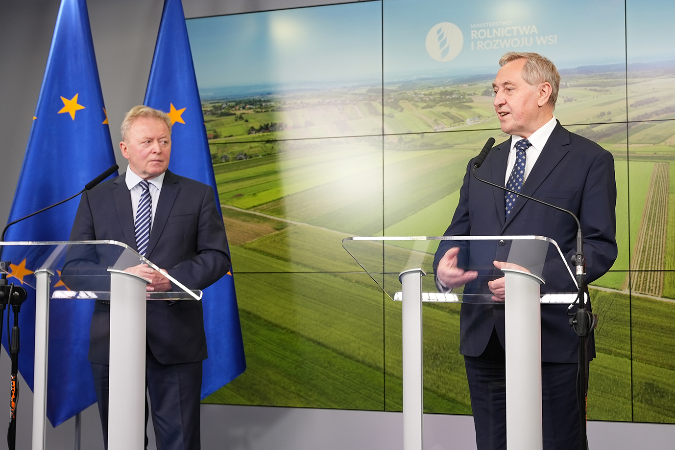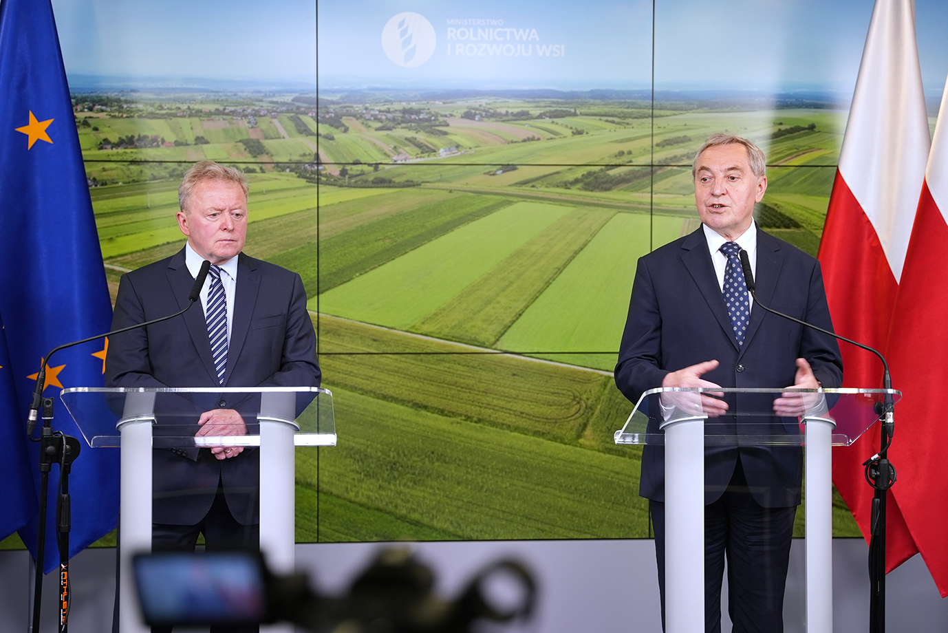 Podczas wspólnej konferencji prasowej wicepremier, minister rolnictwa i rozwoju wsi Henryk Kowalczyk oraz komisarz UE ds. rolnictwa Janusz Wojciechowski przedstawili ocenę polskiego Planu Strategicznego dla Wspólnej Polityki Rolnej na lata 2023–2027.