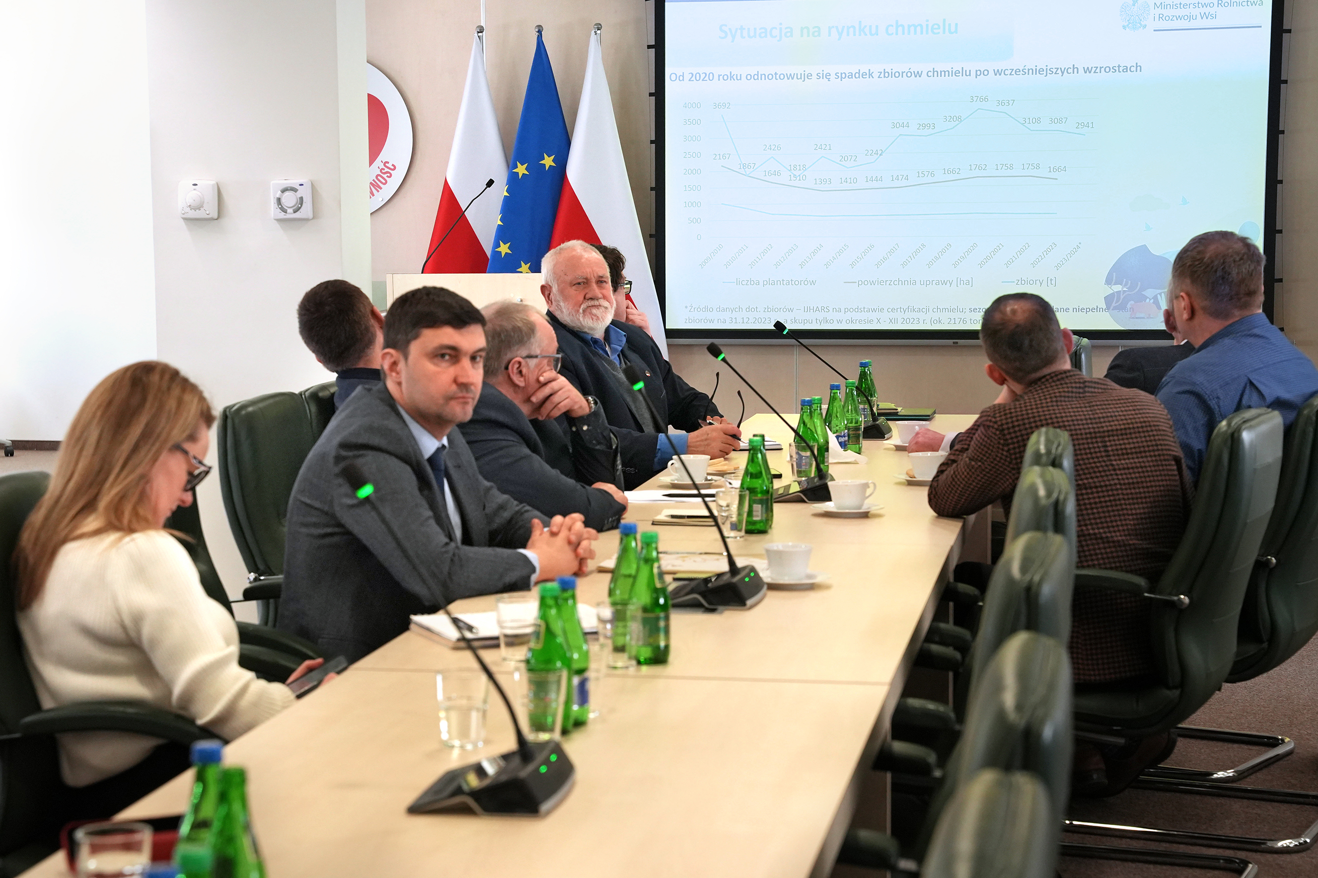 W spotkaniu uczestniczyli również pracownicy ministerstwa, instytutów badawczych oraz przedstawiciele producentów chmielu, podmiotów skupujących chmiel, przetwórców oraz firm produkujących piwo.