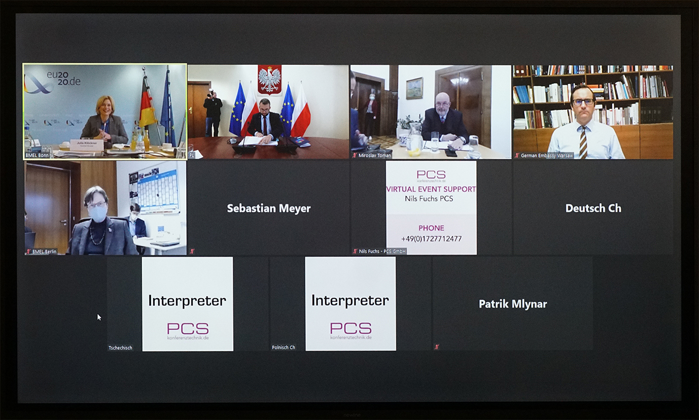 Minister Grzegorz Puda wziął dziś udział w spotkaniu online z minister wyżywienia i rolnictwa Republiki Federalnej Niemiec Julią Klöckner i ministrem rolnictwa Republiki Czeskiej Miroslavem Tomanem. Rozmowy dotyczyły wzmocnienia współpracy w zakresie zwalczania Afrykańskiego Pomoru Świń (ASF) w Europie i odbyły się z udziałem Głównych Lekarzy Weterynarii trzech krajów.