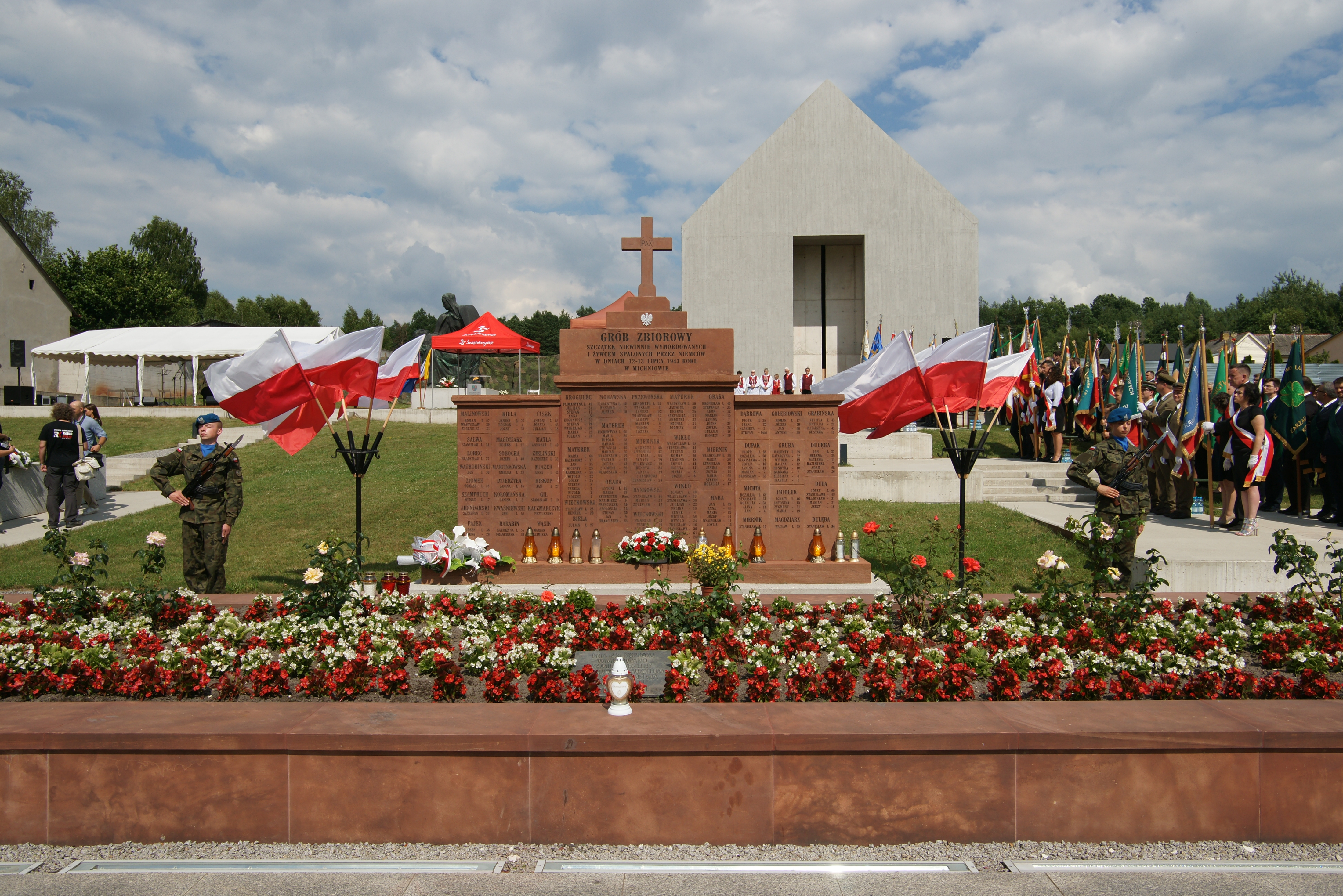„Ta postawa spotkała się z okrutną zemstą, gdy 75 lat temu Niemcy rozpoczęli akcję pacyfikacyjną. Zginęło tutaj wówczas ponad dwustu Polaków. Mężczyzn, kobiet i dzieci, z których najmłodsze miało zaledwie 9 dni”.
