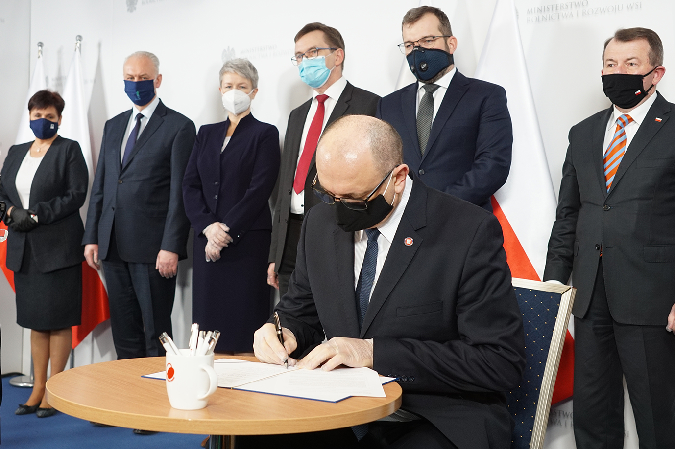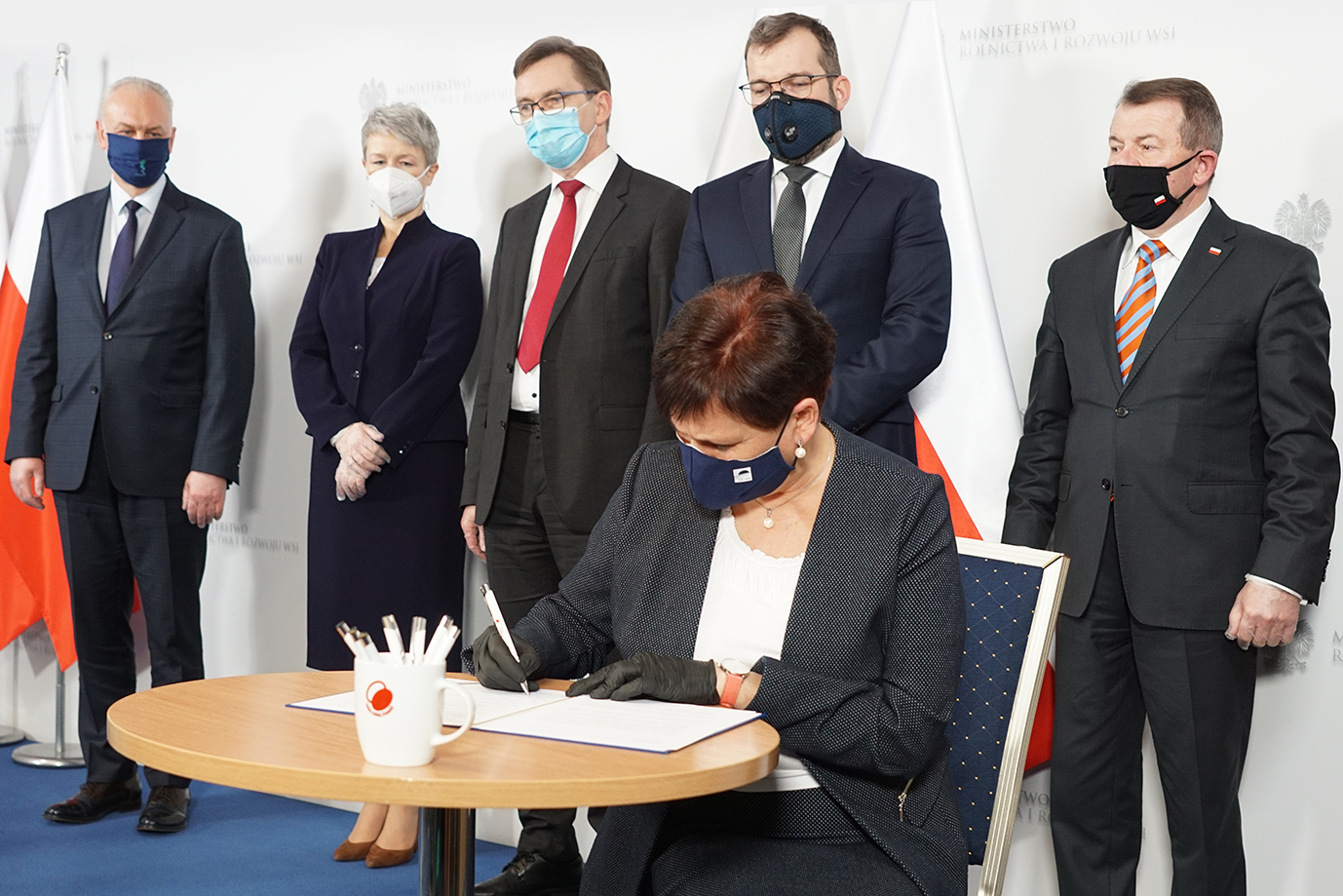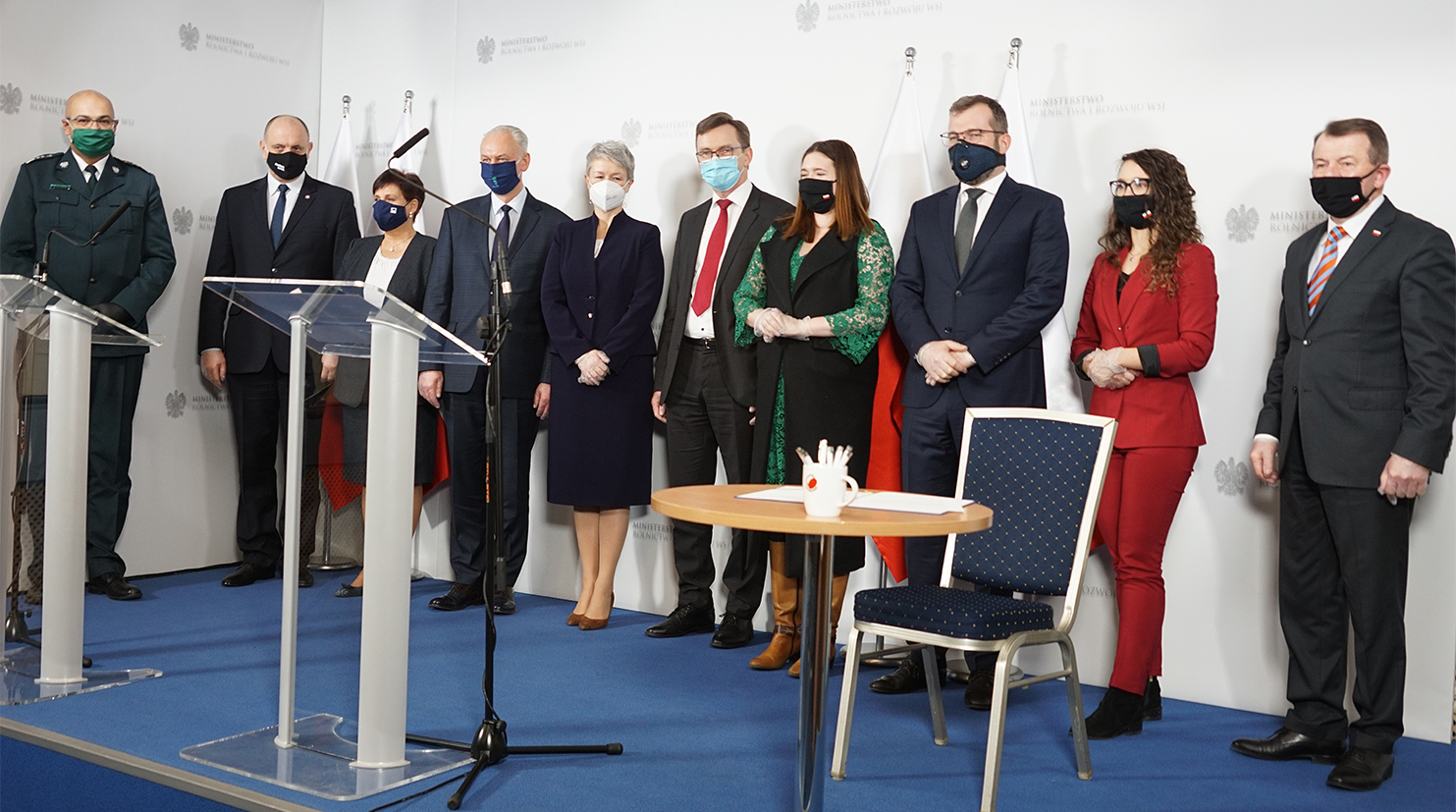 List podpisali: pełnomocnik Prezesa Rady Ministrów do spraw GovTech, KPRM Justyna Orłowska, minister rolnictwa i rozwoju wsi Grzegorz Puda, zastępca dyrektora generalnego Krajowego Ośrodka Wsparcia Rolnictwa Wojciech Kędzia, główny lekarz weterynarii Bogdan Konopka, zastępca głównego inspektora jakości handlowej artykułów rolno-spożywczych Magdalena Świderska, główny inspektor ochrony roślin i nasiennictwa Andrzej Chodkowski, prezes Agencji Restrukturyzacji i Modernizacji Rolnictwa Halina Szymańska, główny inspektor sanitarny Krzysztof Saczka, główny inspektor transportu drogowego Alvin Gajadhur.