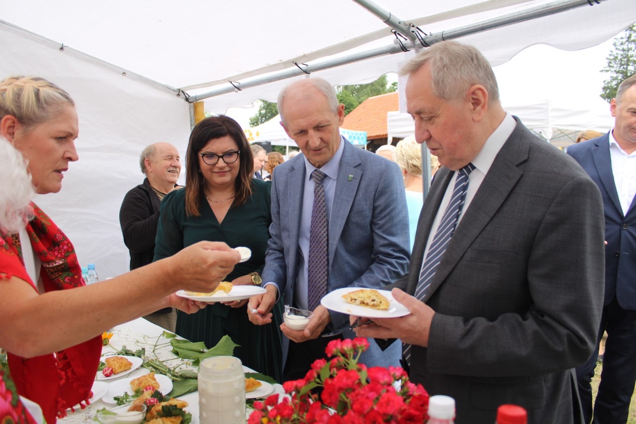 Niezwykle smaczne, dobrze przyrządzone i atrakcyjnie podane regionalne dania podziwiał wicepremier, minister rolnictwa i rozwoju wsi Henryk Kowalczyk podczas kolejnej odsłony „Bitwy Regionów” na Pikniku z Produktem Polskim tym razem w powiecie wyszkowskim – w Skansenie im. Marii Żywirskiej w Brańszczyku.