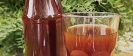 Jasnobrązowa, bursztynowa ciecz; na dnie naczynia, w którym jest przechowywana, wytrąca się osad