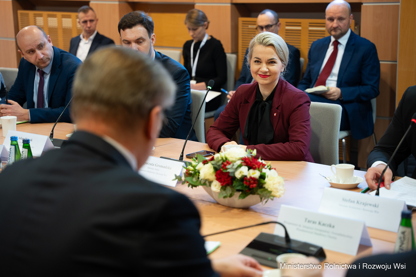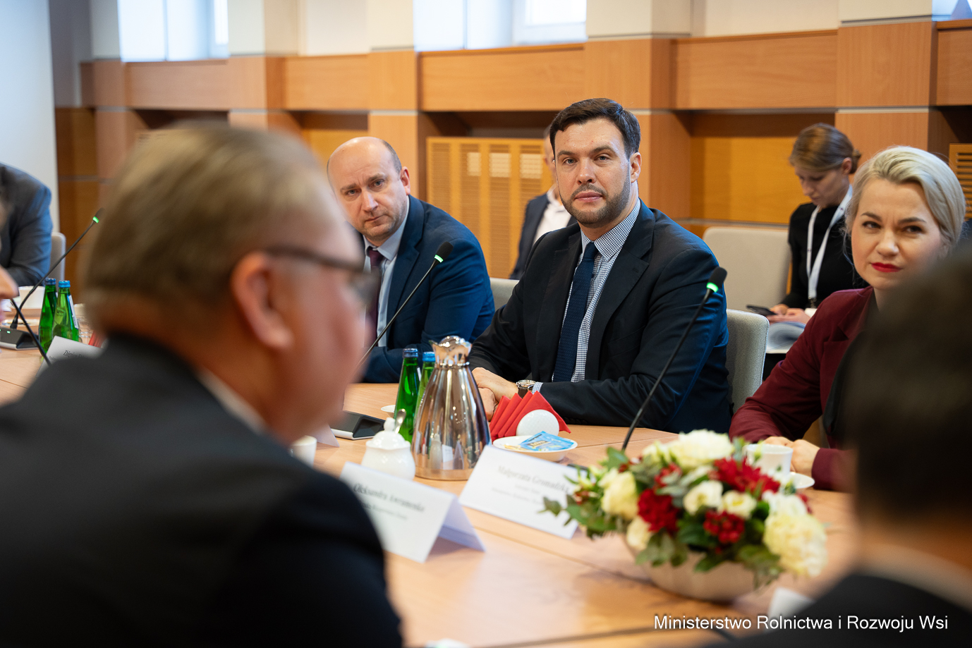 Ministrowi Stefanowi Krajewskiemu towarzyszyli na spotkaniu członkowie kierownictwa resortu: Sekretarz Stanu Małgorzata Gromadzka i Podsekretarz Stanu Adam Nowak oraz Główny Lekarz Weterynarii Paweł Meyer.