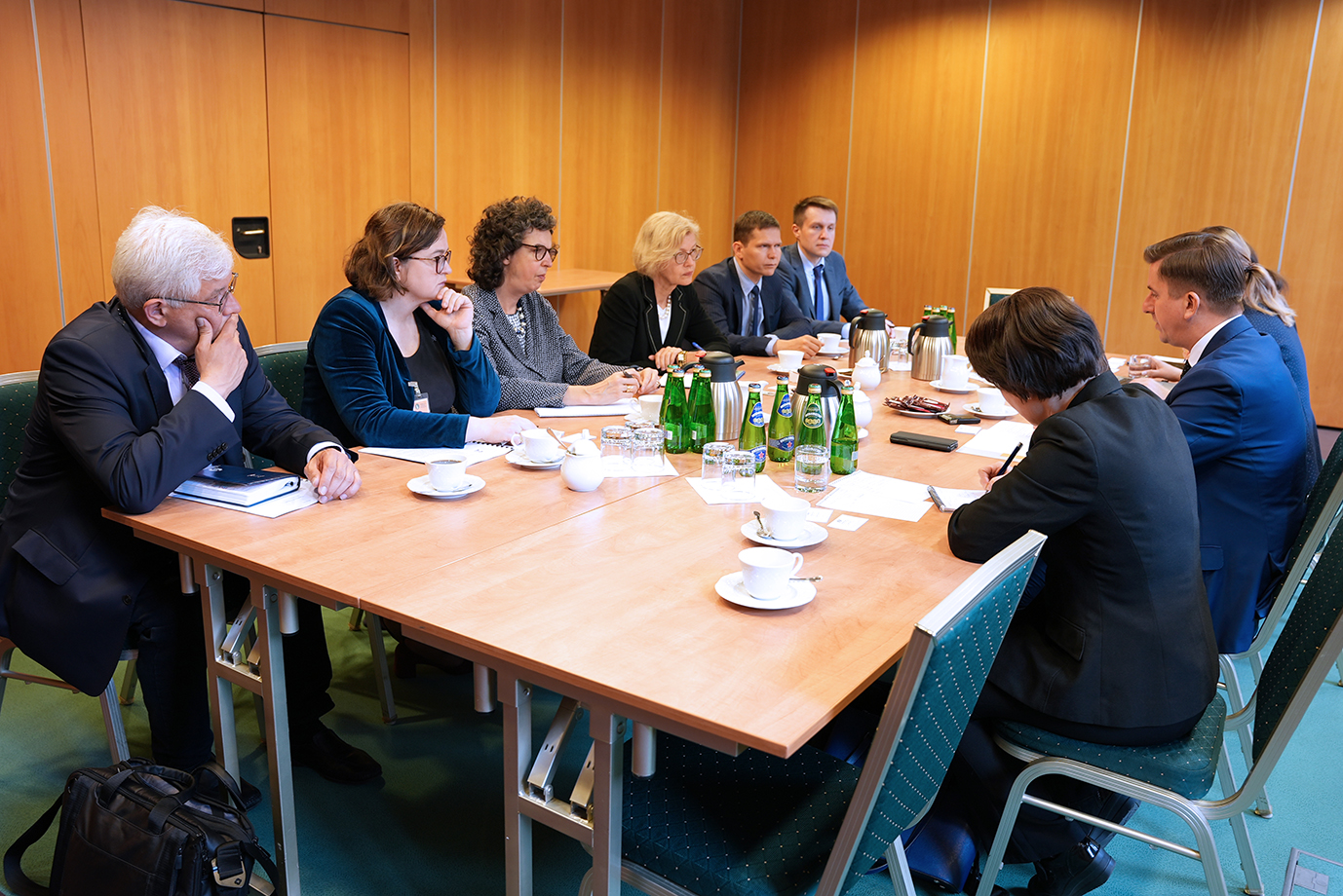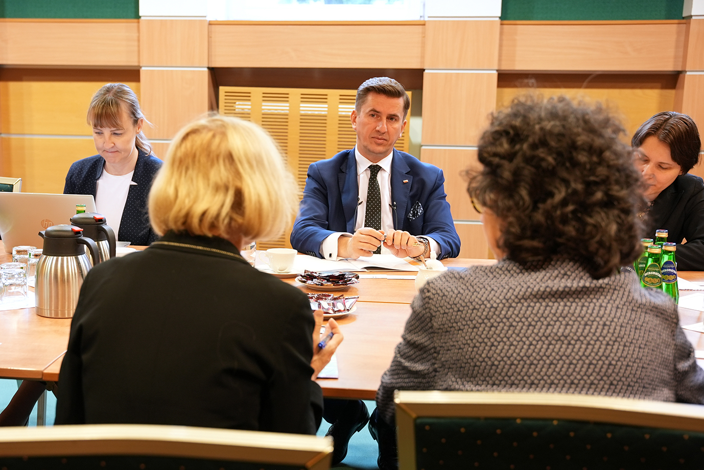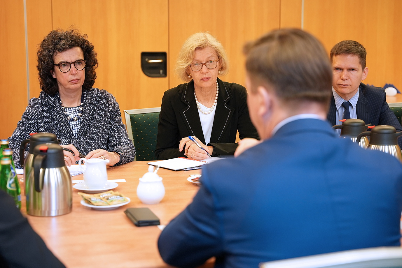 Sekretarz stanu Rafał Romanowski spotkał się dzisiaj z delegacją Europejskiego Banku Odbudowy i Rozwoju (EBOR) pod przewodnictwem Susan Goeransson, dyrektor ds. infrastruktury na Europę. Spotkanie dotyczyło możliwości zaangażowania EBOR w inwestycje służące zwiększeniu eksportu towarów z Ukrainy.