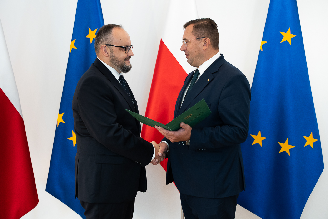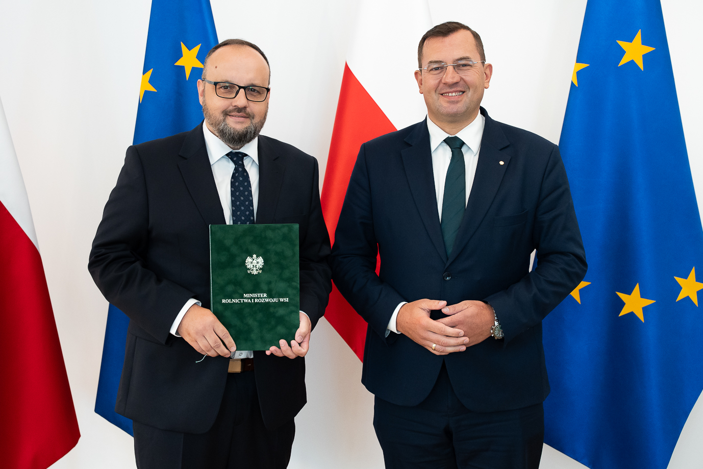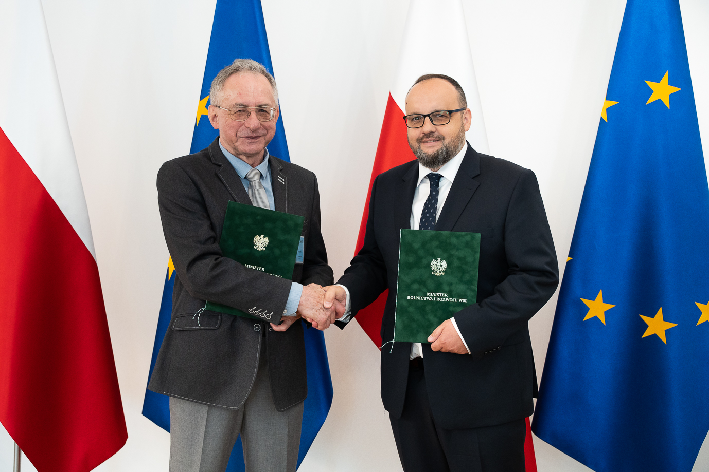 Minister rolnictwa i rozwoju wsi Stefan Krajewski wręczył akt powołania na stanowisko Dyrektora Instytutu Technologiczno-Przyrodniczego - Państwowego Instytutu Badawczego (ITP-PIB) w Falentach dr. inż. Wojciechowi Frątczakowi.