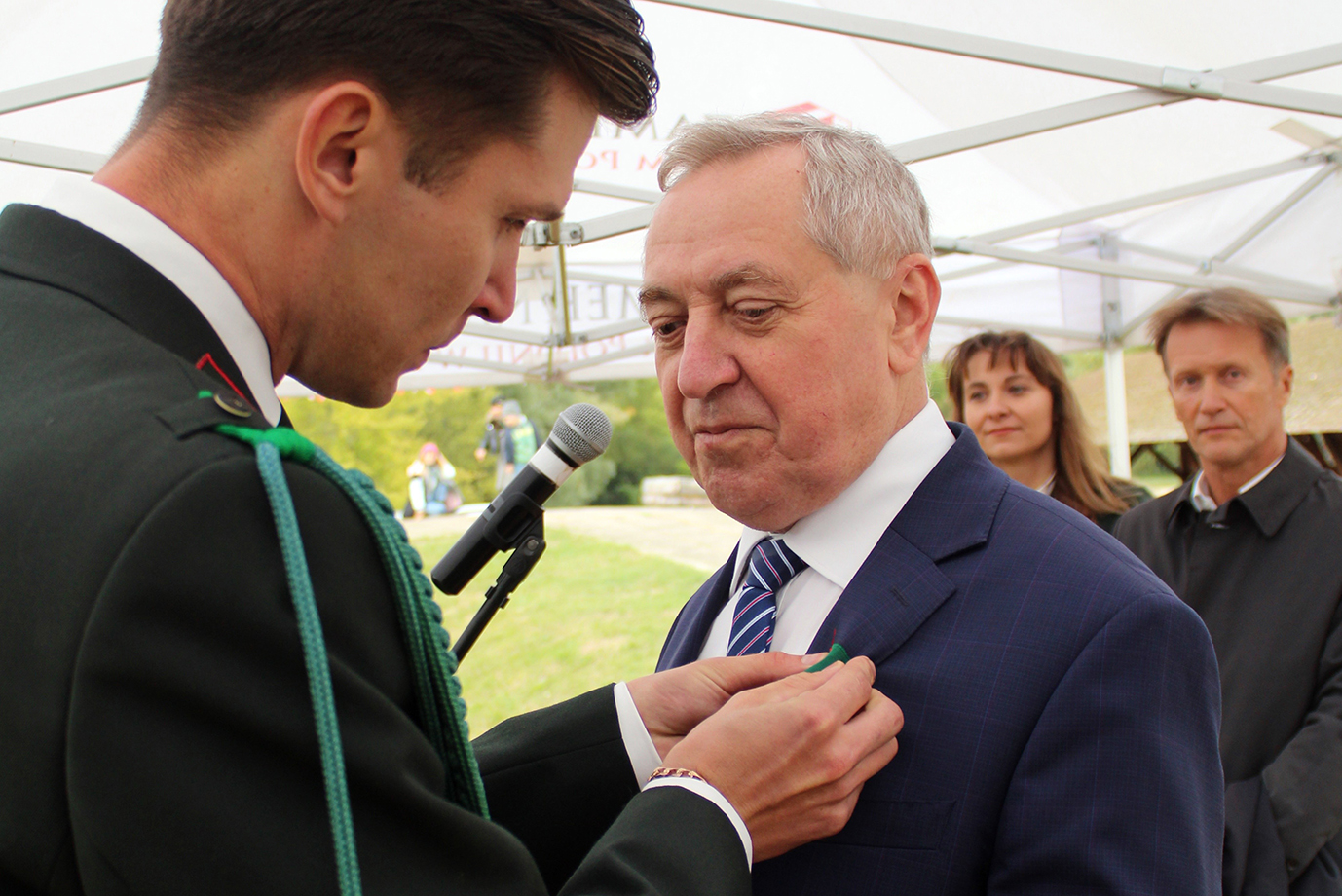Łowczy okręgowy Daniel Nitowski odznaczył wicepremiera Henryka Kowalczyka medalem za zasługi dla łowiectwa okręgu ciechanowskiego Polskiego Związku Łowieckiego.