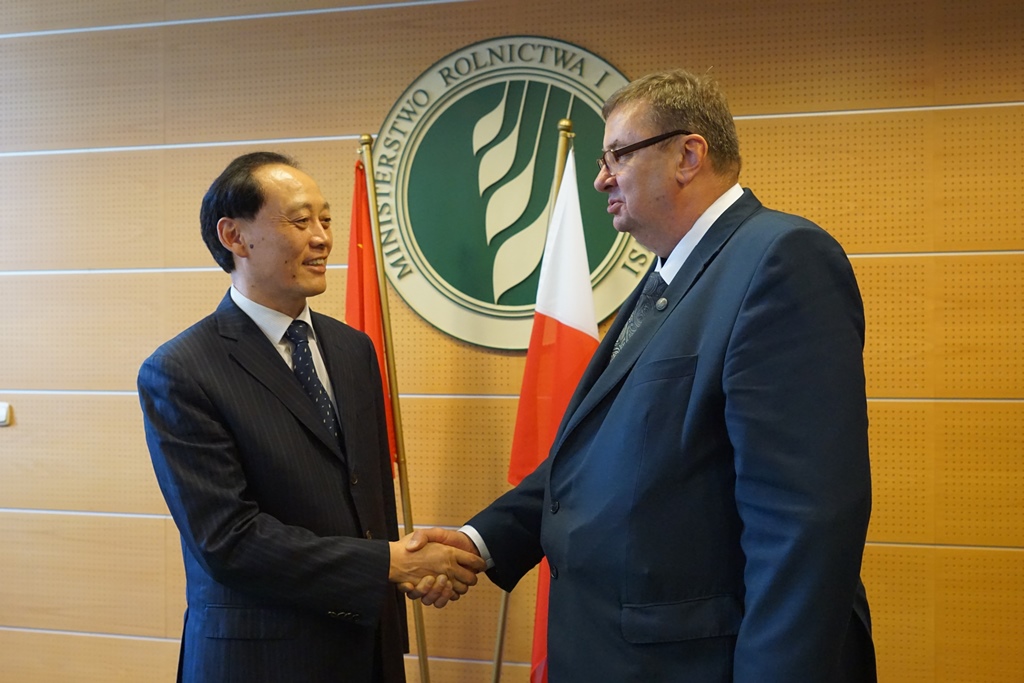 Wiceminister rolnictwa i obszarów wiejskich Chińskiej Republiki Ludowej Yu Xinrong przekazał za pośrednictwem sekretarza stanu Szymona Giżyńskiego na ręce ministra Jana Krzysztofa Ardanowskiego zaproszenie dla Kierownictwa Resortu Rolnictwa do złożenia, w uzgodnionym terminie, oficjalnej wizyty w Pekinie.