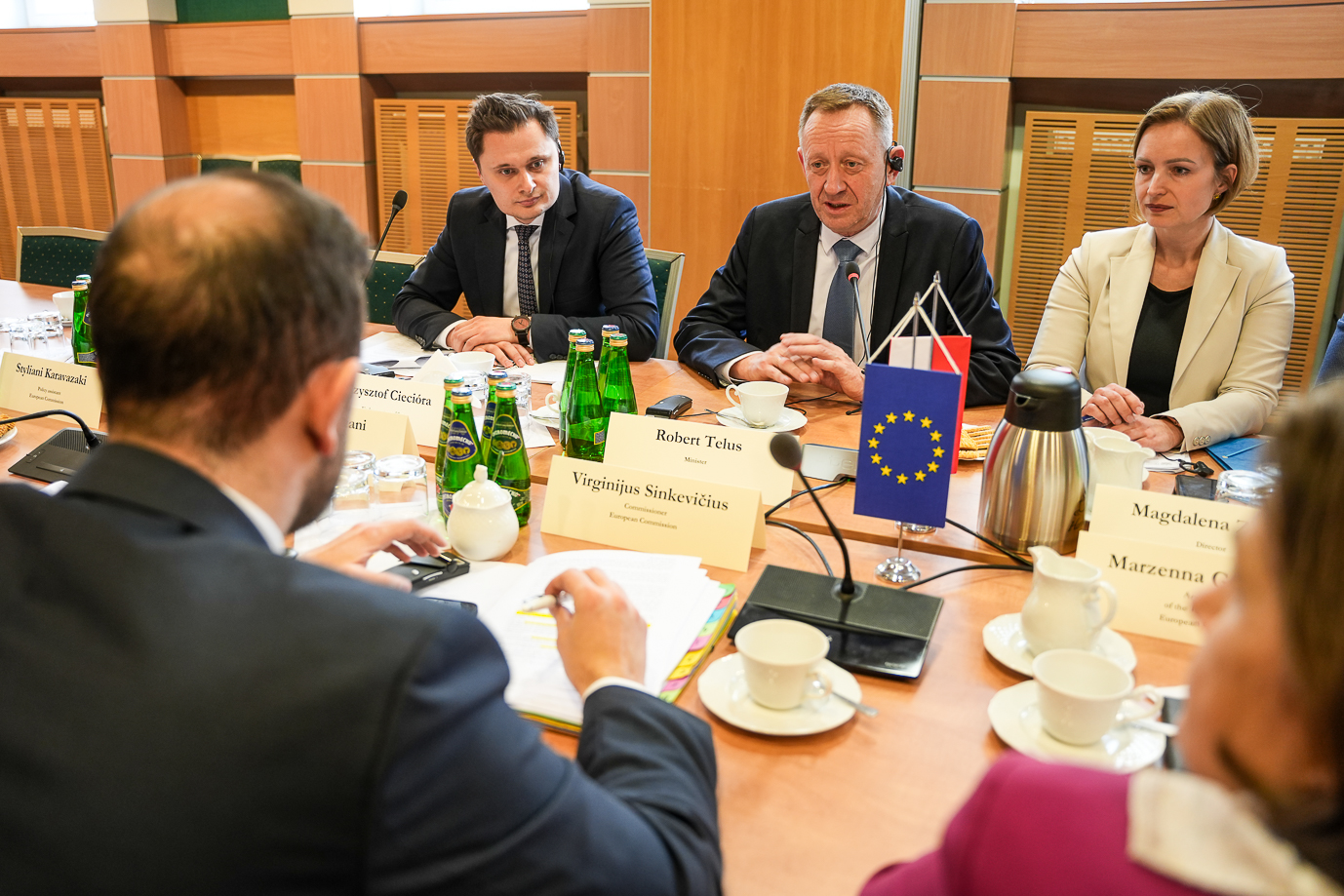 Minister Robert Telus, wraz z podsekretarzem stanu w MRiRW Krzysztofem Cieciórą, spotkał się dziś z komisarzem UE ds. środowiska Virginijusem Sinkevičiusem.