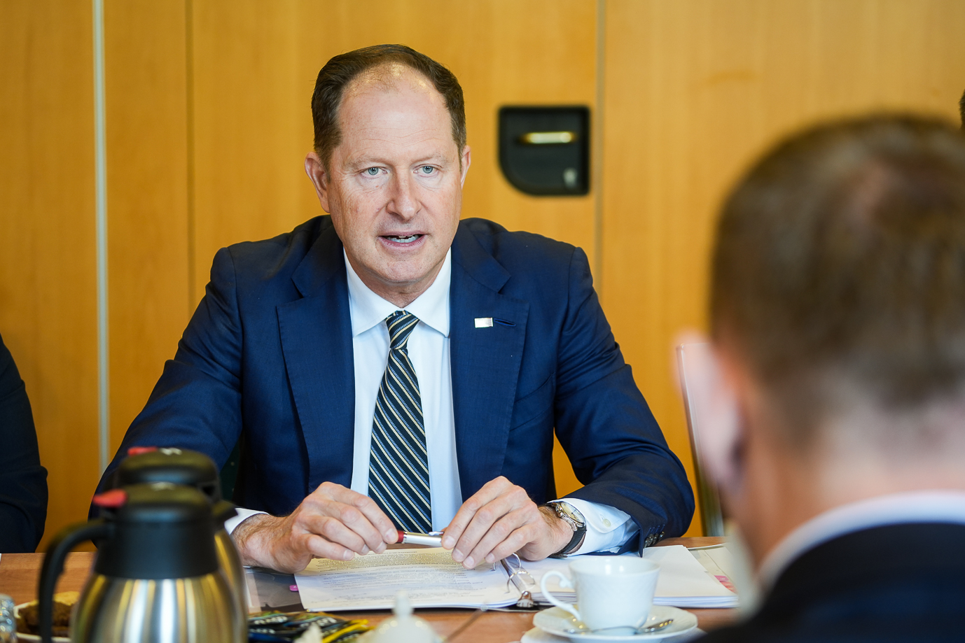 O najważniejszych sprawach z zakresu dwustronnej współpracy w sektorze rolno-spożywczym rozmawiali w siedzibie MRiRW minister rolnictwa i rozwoju wsi Robert Telus i ambasador USA w Polsce Mark Brzezinski.