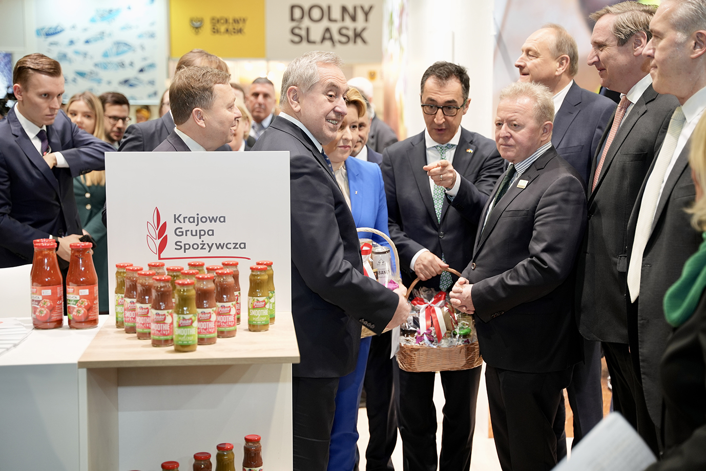 Szef resortu rolnictwa Henryk Kowalczyk wraz z zastępcą dyrektora generalnego KOWR Małgorzatą Gośniowską-Kolą uroczyście otworzyli polskie stoisko narodowe na targach Grüne Woche. Wydarzeniu towarzyszył briefing prasowy, podczas którego wicepremier nawiązał do zakończonego właśnie spotkania z Ministrami Rolnictwa Czech, Węgier, Bułgarii i Rumunii ws. wpływu na rynek rolny wzmożonego importu towarów rolno-spożywczych z Ukrainy.