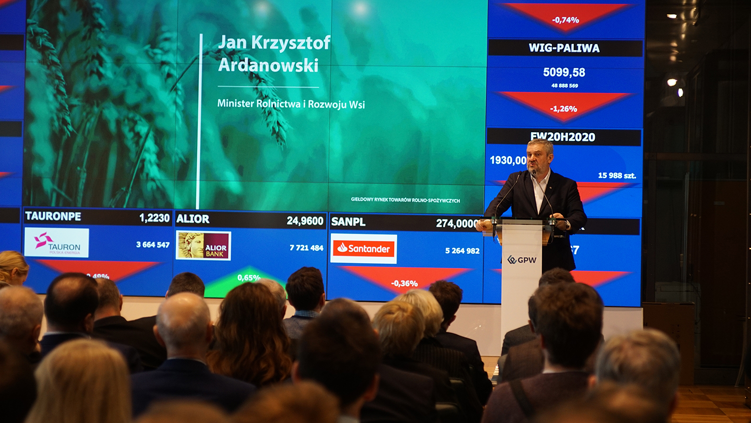 Oprócz ministra uczestniczyli w niej także: sekretarz stanu, Pełnomocnik Rządu do Spraw Instrumentów Finansowania Rozwoju Gospodarczego Państwa Artur Soboń, zastępca dyrektora generalnego KOWR Wojciech Kędzia oraz prezes zarządu GPW Marek Dietl.