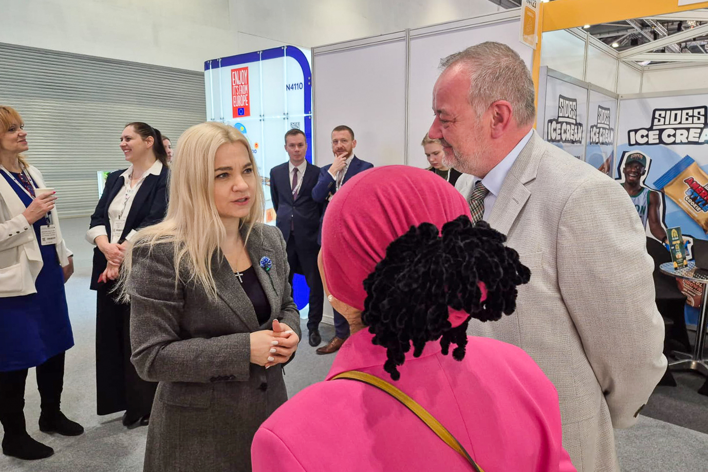 Sekretarz stanu Małgorzata Gromadzka wzięła udział w Międzynarodowych Targach Spożywczych „International Food Exhibition” (IFE) w Londynie, aby wesprzeć polskie firmy prezentujące swoje produkty na rynku brytyjskim. IFE to największe wydarzenie targowe w Wielkiej Brytanii, które jest wyjątkową okazją do promocji innowacyjności i wysokiej jakości w przemyśle rolno-spożywczym. Oferta polskich firm była obecna na polskim stoisku narodowym organizowanym przez Krajowy Ośrodek Wsparcia Rolnictwa, na stoiskach organizowanych przez Urzędy Marszałkowskie Województwa Łódzkiego i Podkarpackiego oraz na stoiskach firm.