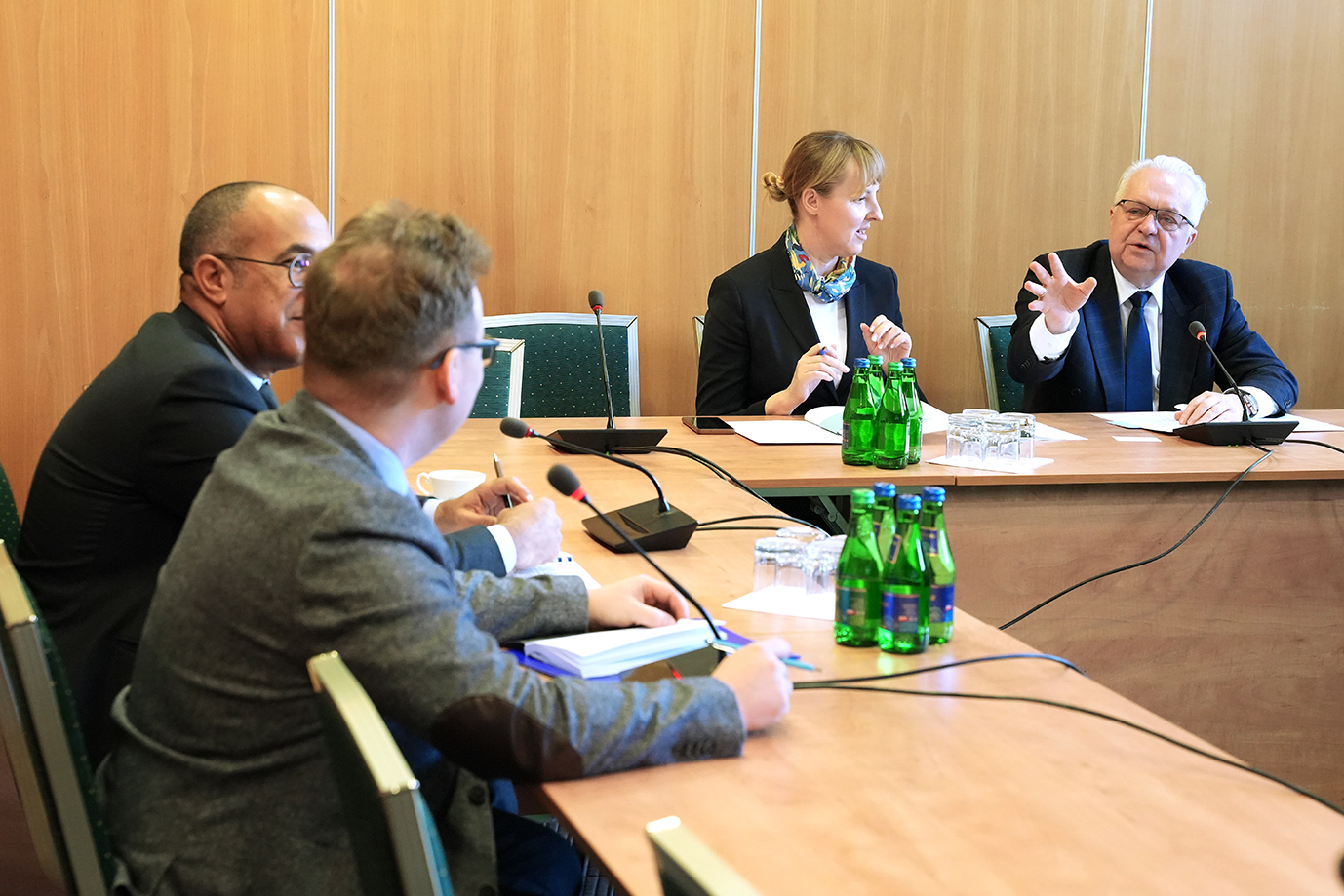 Sekretarz stanu Jacek Czerniak spotkał się dziś z wysokiej rangi przedstawicielami Banku Światowego: Samehem Wahba, dyrektorem regionalnym ds. zrównoważonego rozwoju na region Europy i Azji Środkowej oraz Marciem Sadlerem. liderem programów