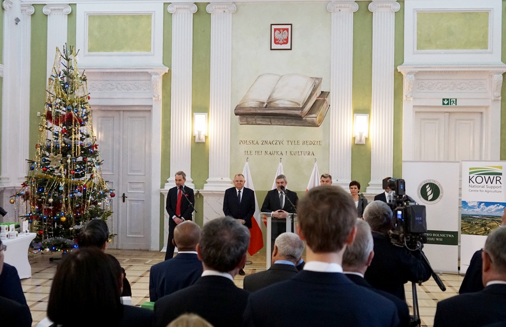 – Chcemy być obecni na rynkach całego świata i temu służą podejmowane przez nas działania promocyjne. Chcemy jak najszerzej przekazywać informacje o polskiej żywności. Chcemy, aby przedstawiciele ambasad mieli pełną informację o tym, jakie jest nasze rolnictwo i jak wspaniała jest nasza żywność. Zależy nam na tym, aby jej jakością i smakiem dotrzeć do waszych gustów, do potrzeb kulinarnych i do waszych serc – powiedział minister Ardanowski witając przybyłych gości.