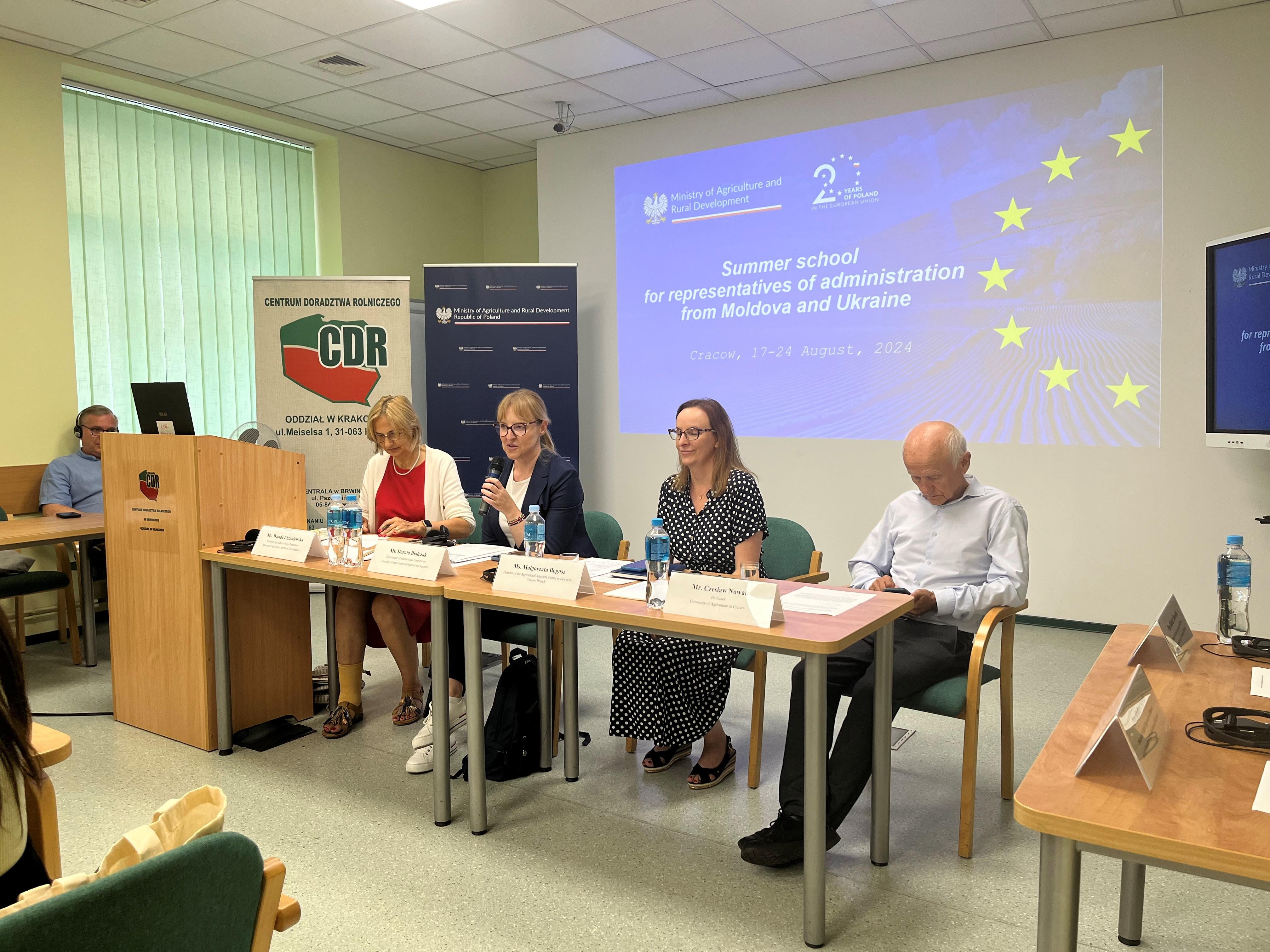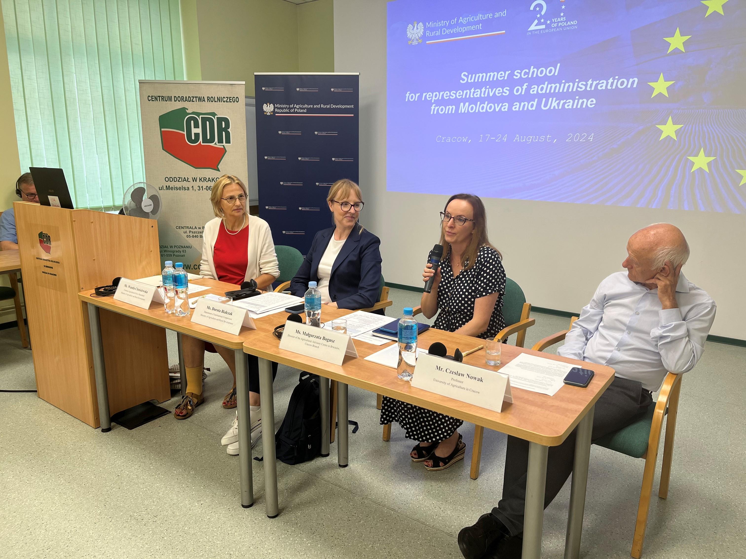 Podczas spotkania inauguracyjnego dyrektor Departamentu Współpracy Międzynarodowej MRiRW Dorota Białczak podkreśliła, że zależy nam, aby podczas pobytu w Polsce przedstawiciele Mołdawii i Ukrainy otrzymali zarówno wiedzę teoretyczną, jak też, aby mieli okazję zapoznać się z przykładami dobrych praktyk w polskim rolnictwie. Zaznaczyła, że chcemy wspierać Mołdawię i Ukrainę na drodze do członkostwa w UE.
