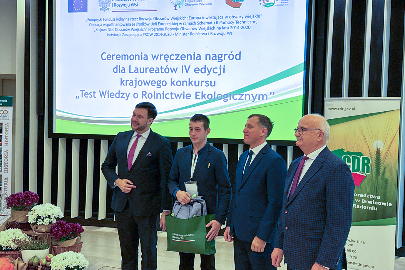 Nagrody laureatom etapu ogólnokrajowego Testu Wiedzy o Rolnictwie Ekologicznym wręczył wiceminister Adam Nowak. Towarzyszyli mu dyrektor Centrum Doradztwa Rolniczego w Brwinowie Oddział w Radomiu Henryk Skórnicki oraz zastępca dyrektora Departamentu Rolnictwa Ekologicznego i Jakości Żywności MRiRW Jan Golba.