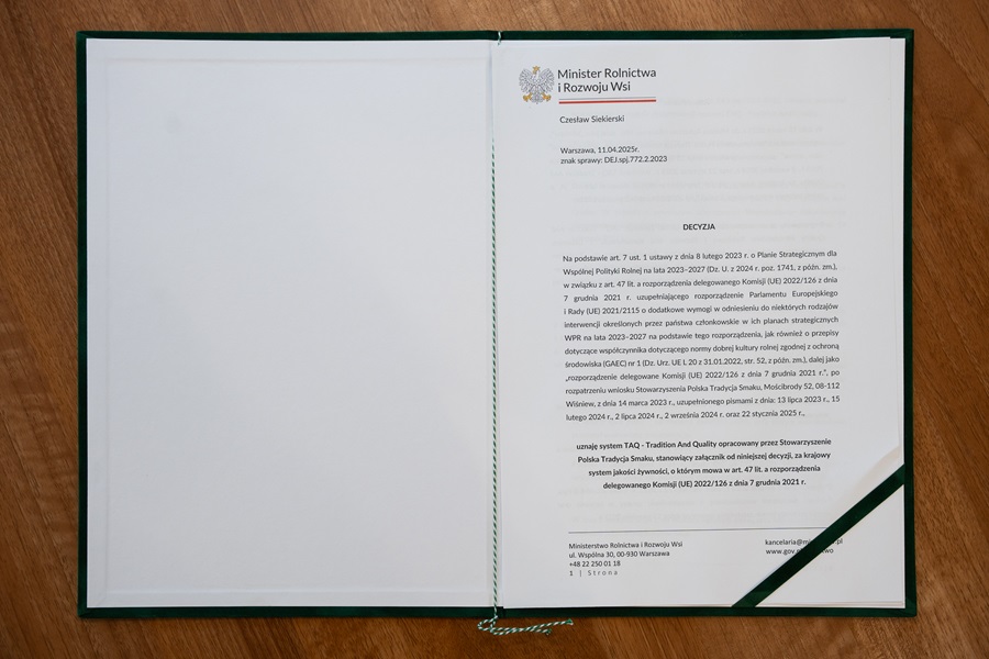 11 kwietnia 2025 r. minister rolnictwa i rozwoju wsi Czesław Siekierski podpisał decyzję uznającą system TAQ - Tradition And Quality za krajowy system jakości żywności. System został opracowany przez Stowarzyszenie Polska Tradycja Smaku.