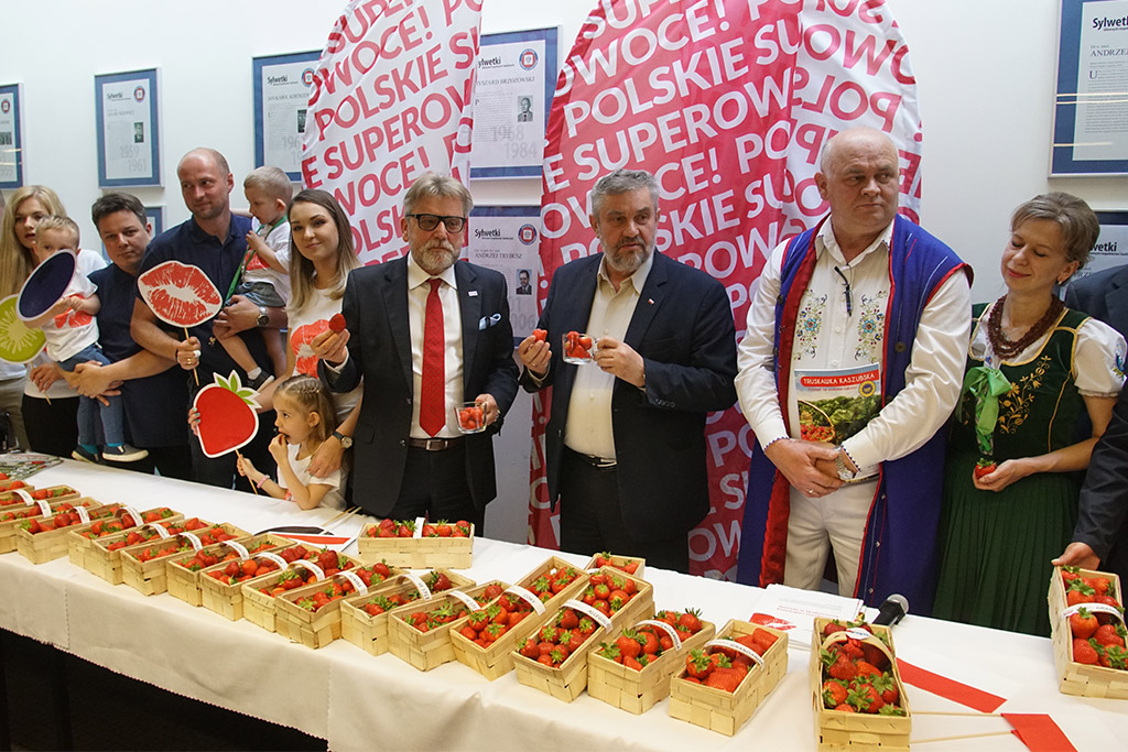 Minister rolnictwa i rozwoju wsi Jan Krzysztof Ardanowski wraz z głównym inspektorem sanitarnym Jarosławem Janem Pinkasem zachęcali dziś do kupowania i spożywania w sezonie polskich truskawek i innych owoców miękkich.