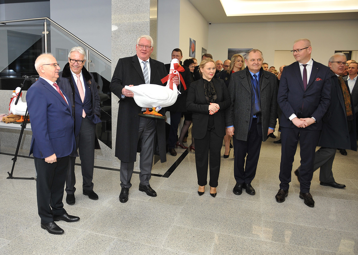 – Jesteście państwo przykładem wielkopolskiej gospodarności, kreatywności, innowacyjności i przedsiębiorczości – podkreślił wojewoda wielkopolski Łukasz Mikołajczyk zwracając się do Ireny i Marka Aksamskich właścicieli zakładu, dziękując równocześnie za urzeczywistniający się właśnie tutaj ,,klasyczny przykład współpracy biznesu z nauką''.