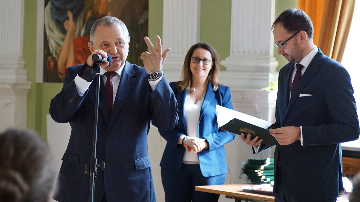 Podsekretarz stanu Ryszard Zarudzki w Centralnej Bibliotece Rolniczej im. Michała Oczapowskiego w Warszawie odebrał dziś od nauczycieli uroczyste ślubowanie oraz wręczył akty nadania stopnia awansu zawodowego nauczyciela mianowanego i dyplomowanego. W sesji letniej w roku szkolnym 2018/2019 zgłosiło się do awansu 87 nauczycieli, w tym 39 na stopień nauczyciela mianowanego oraz 48 na stopień nauczyciela dyplomowanego.