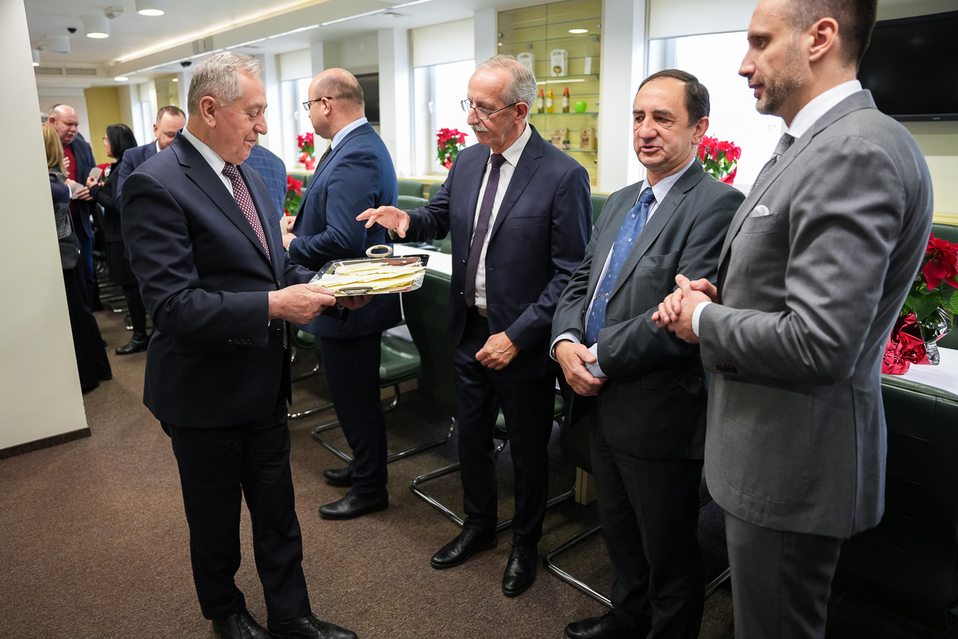 Wicepremier, minister rolnictwa i rozwoju wsi Henryk Kowalczyk wraz z wiceministrami: Anną Gembicką, Rafałem Romanowskim, Lechem Kołakowskim, Januszem Kowalskim, Krzysztofem Cieciórą oraz szefem gabinetu politycznego Przemysławem Bednarskim i dyrektorem generalnym Grzegorzem Mroczkiem spotkali się z przedstawicielami jednostek podległych i nadzorowanych przez MRiRW.