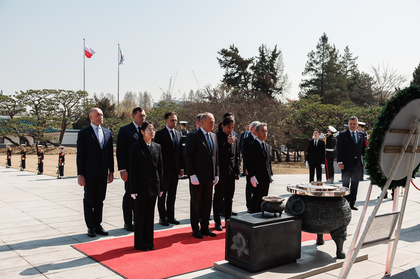 Delegacja rządowa złożyła również wieniec pod pomnikiem pamięci na cmentarzu narodowym w Seulu.