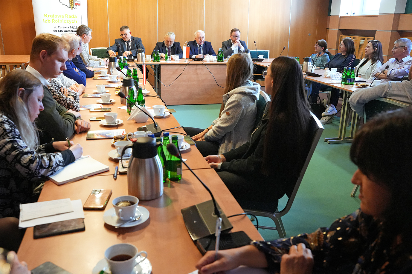 Wiceminister Czerniak przedstawił gościom specyfikę polskiego rolnictwa, wskazując, że cechuje je przewaga małych gospodarstw rodzinnych. Zaprezentował także strukturę Ministerstwa Rolnictwa i Rozwoju Wsi (MRiRW) oraz instytucji, które reprezentują interesy rolników w Polsce oraz wspierają ich przy wnioskowaniu o wsparcie ze środków UE.