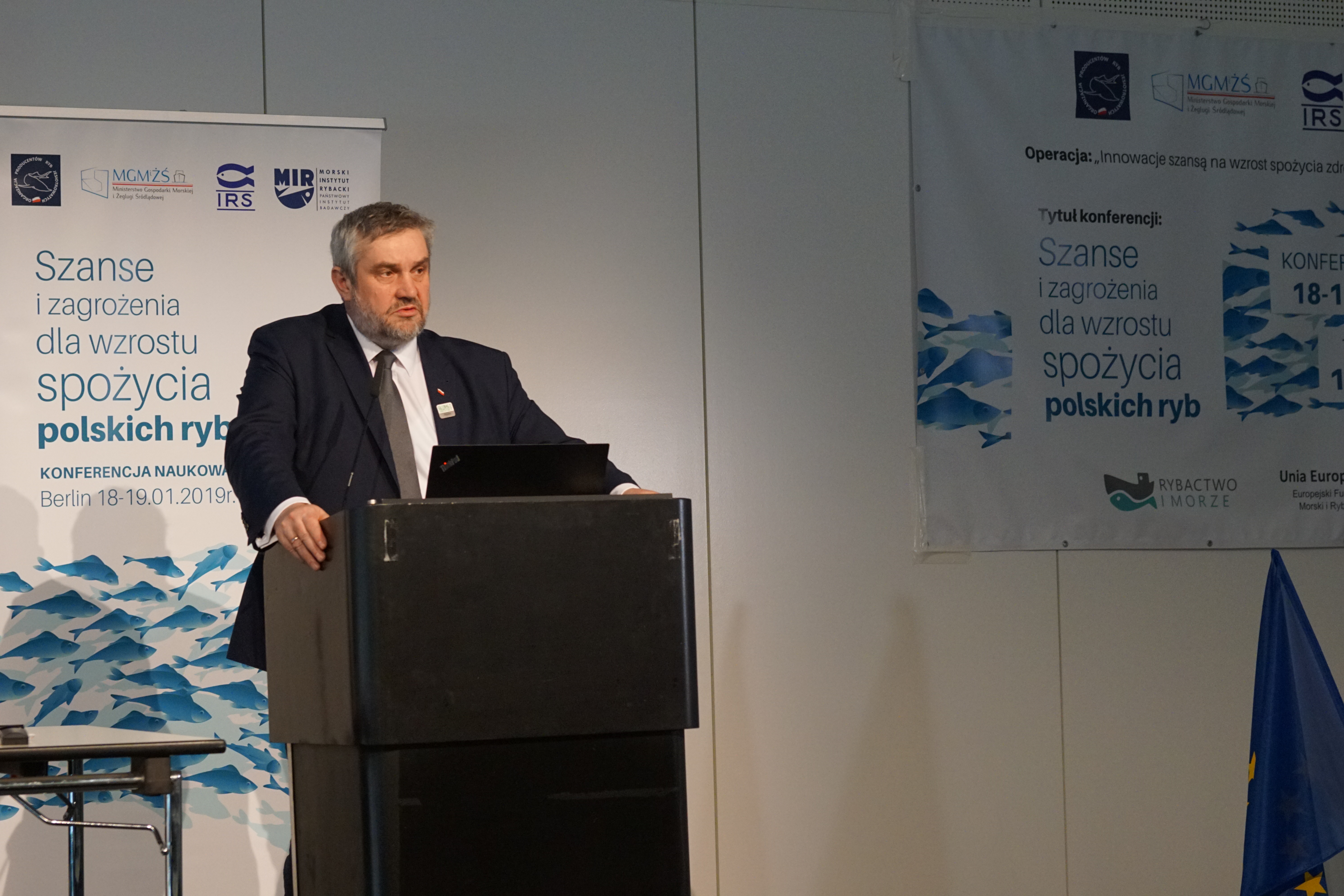 Minister uczestniczył dziś w konferencji zorganizowanej przez Organizację Producentów Ryb Jesiotrowatych wspólnie z Ministerstwem Gospodarki Morskiej i Żeglugi Śródlądowej przy współpracy z instytutami naukowymi, podczas której analizowano szanse wzrostu spożycia zdrowych ryb z polskich wód. Minister podkreślił ścisły związek akwenów śródlądowych i akwakultury z rolnictwem.