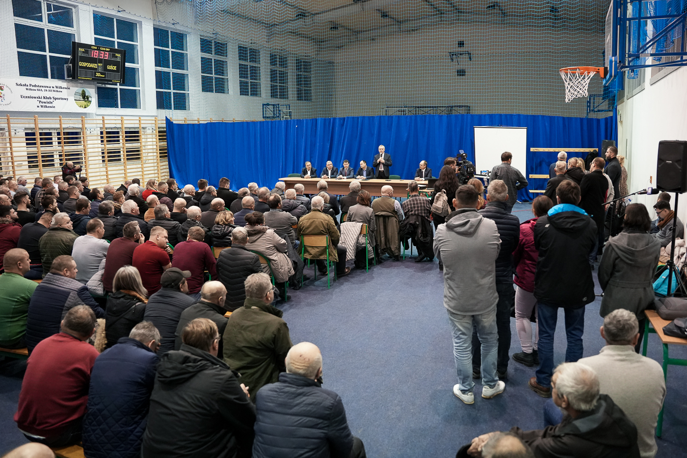 W godzinach popołudniowych szef resortu rolnictwa w szkole podstawowej w Wilkowie spotkał się z plantatorami chmielu. Podczas tego spotkania plantatorzy mieli możliwość zapoznania się z prezentacją dotyczącą wsparcia tego sektora w ramach Krajowego Planu Odbudowy, w zakresie wymiany słupów nośnych impregnowanych kreozotem na plantacjach chmielu.