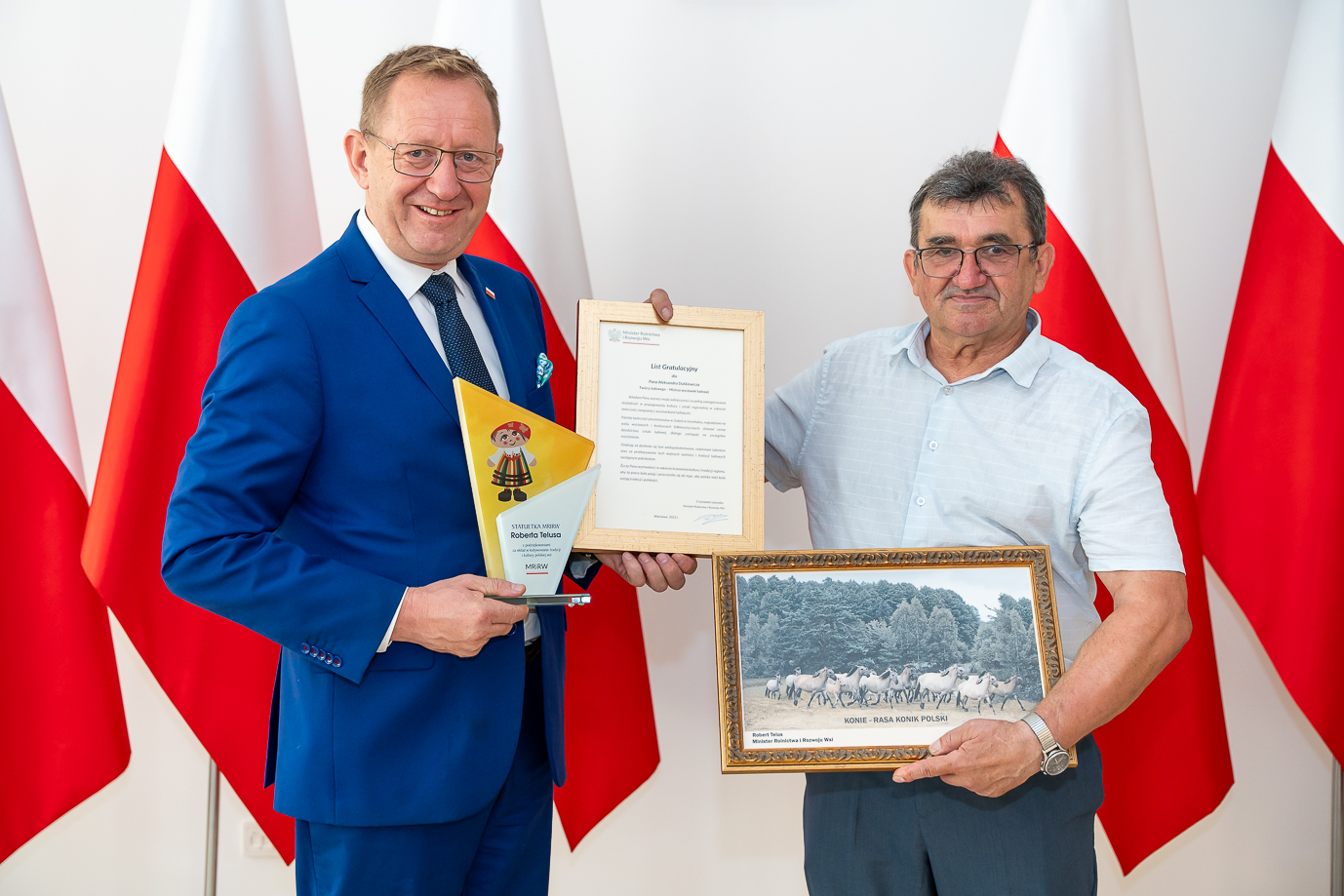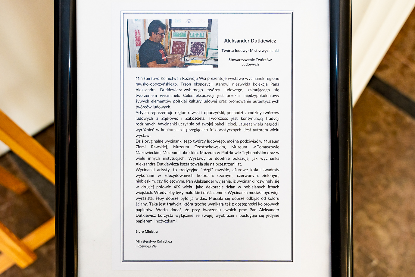 Minister Robert Telus wyraził uznanie dla polskich artystów folklorystycznych i ludowych, którzy poświęcili swoje życie pracy twórczej. Jednym z nich jest mistrz wycinanki z regionu opoczyńsko-rawskiego, Aleksander Dutkiewicz.
