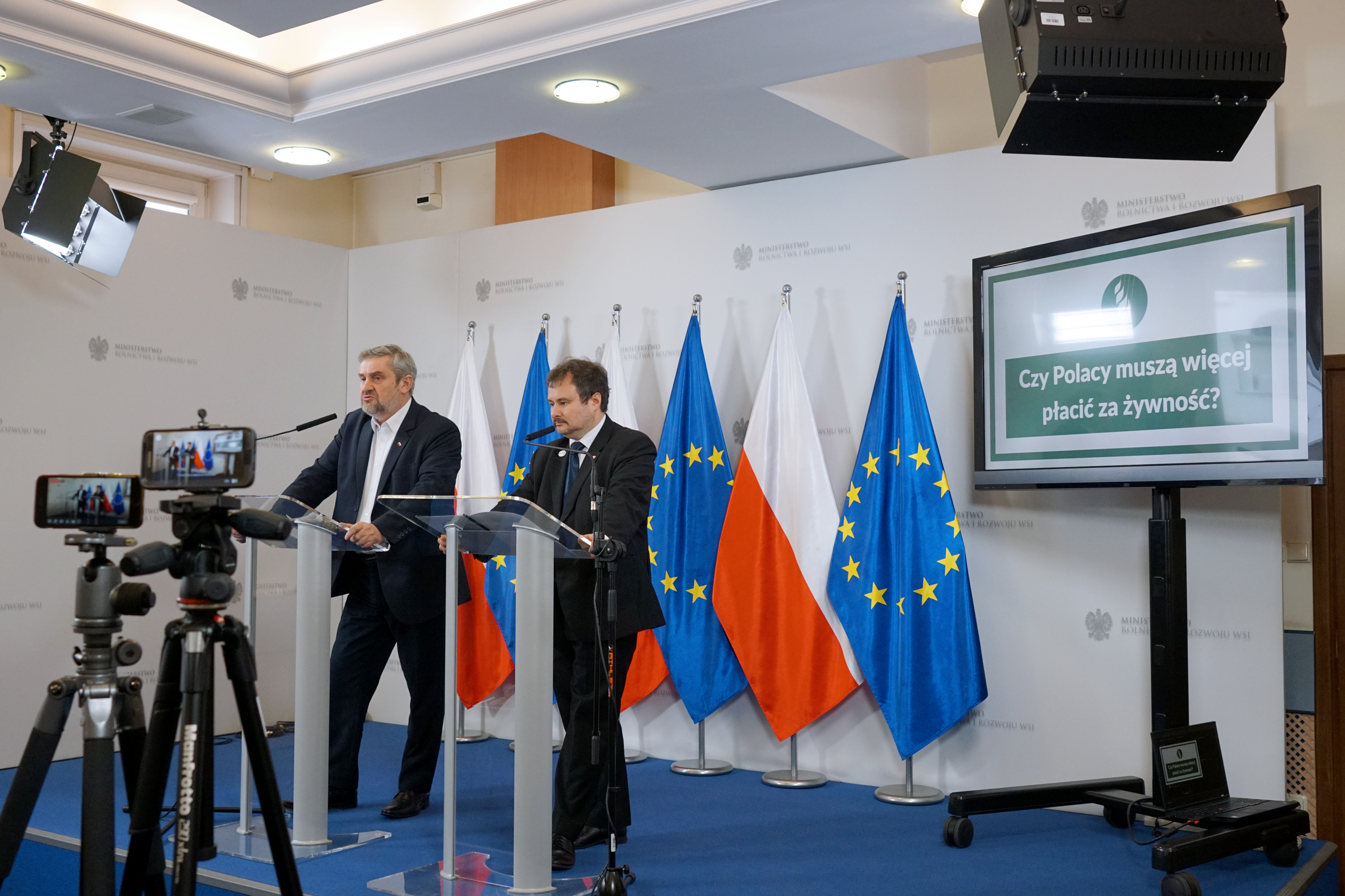 – Dziś ukazał się w jednej z gazet wyjątkowo kłamliwy artykuł krzyczący - Alarm! Drożyzna idzie! Premier funduje nam drożyznę! Ten tekst mnie bardzo poruszył. To niedopuszczalne sugerowanie, że podejmowane przez nas działania mogą wytworzyć sytuację galopującej drożyzny – stwierdził z naciskiem minister rolnictwa i rozwoju wsi Jan Krzysztof Ardanowski podczas dzisiejszej konferencji prasowej odpowiadającej na pytanie czy Polacy muszą więcej płacić za żywność?