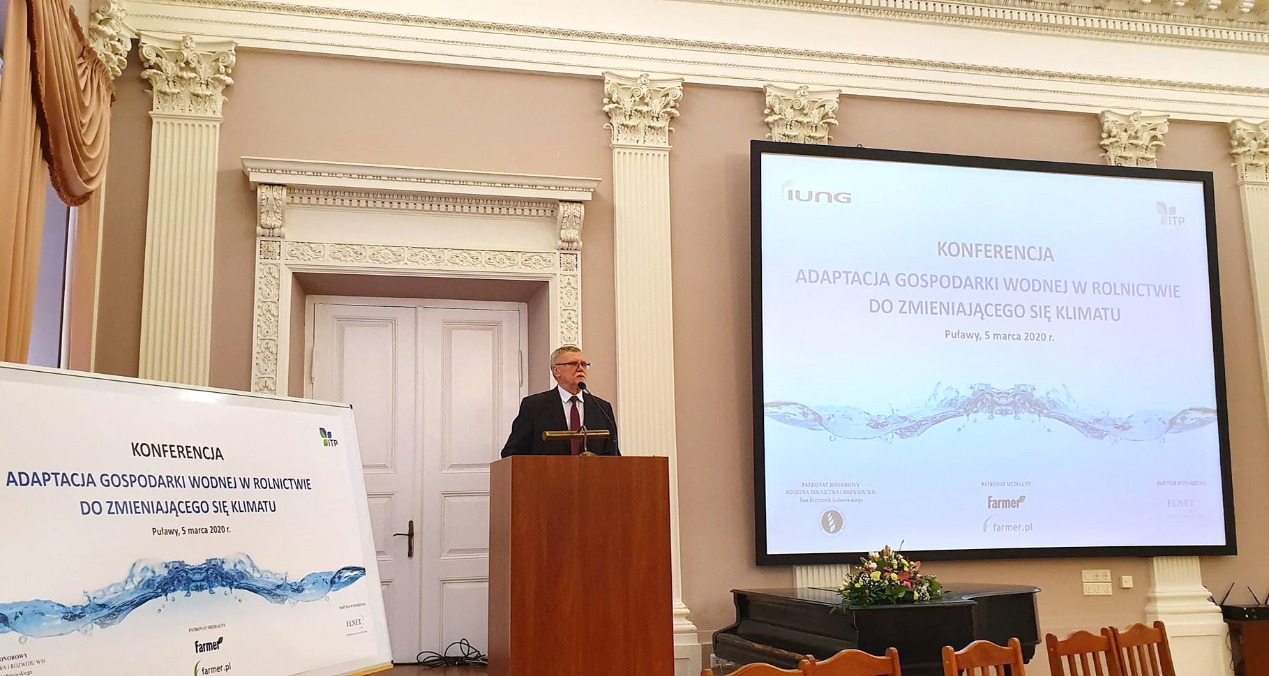 Pod patronatem ministra rolnictwa i rozwoju wsi Jana Krzysztofa Ardanowskiego Instytut Uprawy Nawożenia i Gleboznawstwa - Państwowy Instytut Badawczy oraz Instytut Technologiczno-Przyrodniczy zorganizowały konferencję naukową pt. „Adaptacja gospodarki wodnej w rolnictwie do zmieniającego się klimatu”.