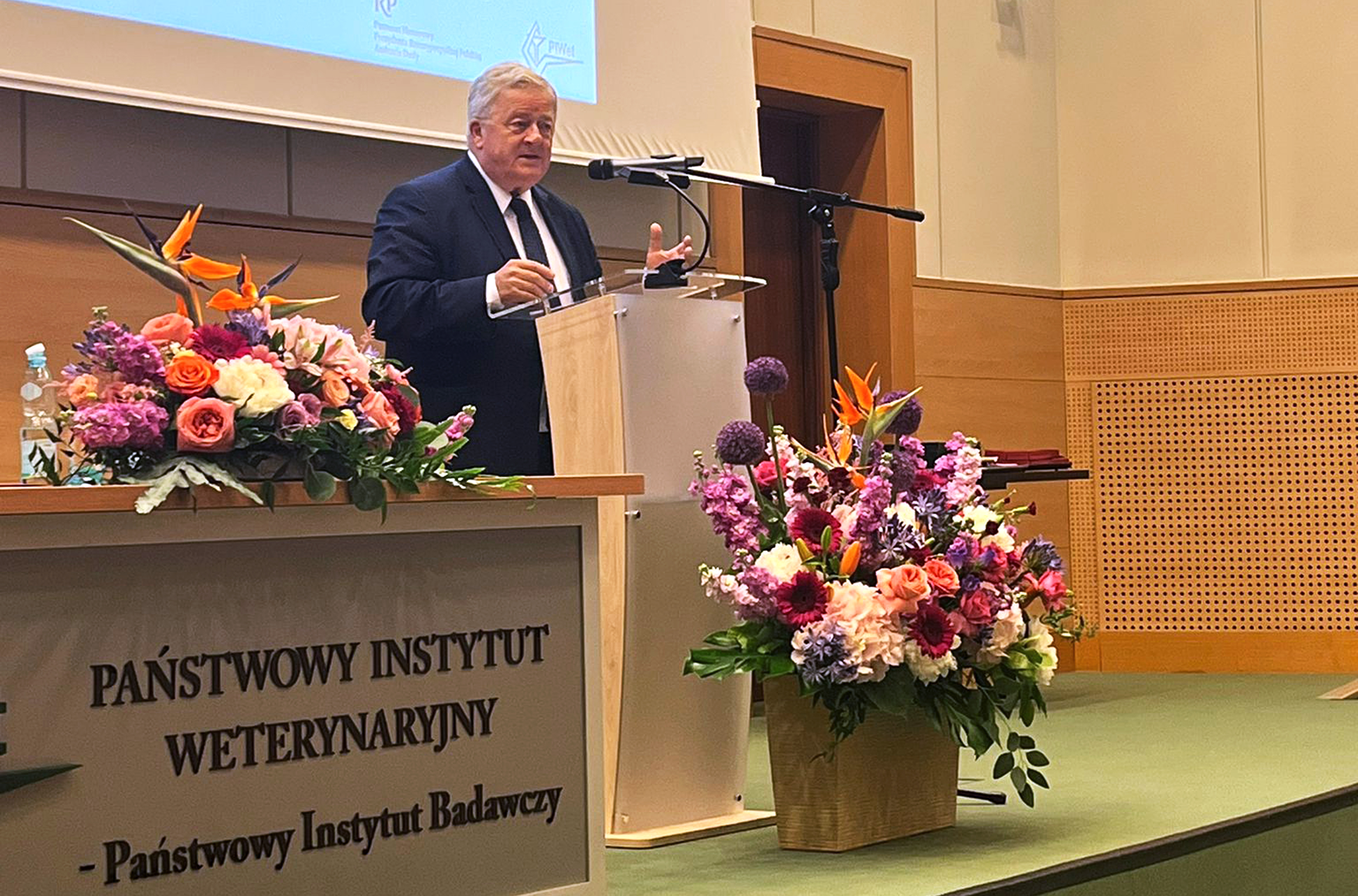 Minister Czesław Siekierski zaakcentował, że jest to jubileusz wyjątkowy – okazja do świętowania nie tylko długiej historii, lecz także imponujących osiągnięć Państwowego Instytutu Weterynaryjnego – Państwowego Instytutu Badawczego w Puławach (PIWet-PIB). Podkreślił także, że zdrowie zwierząt to fundament zdrowia ludzi i stabilności polskiego rolnictwa.
