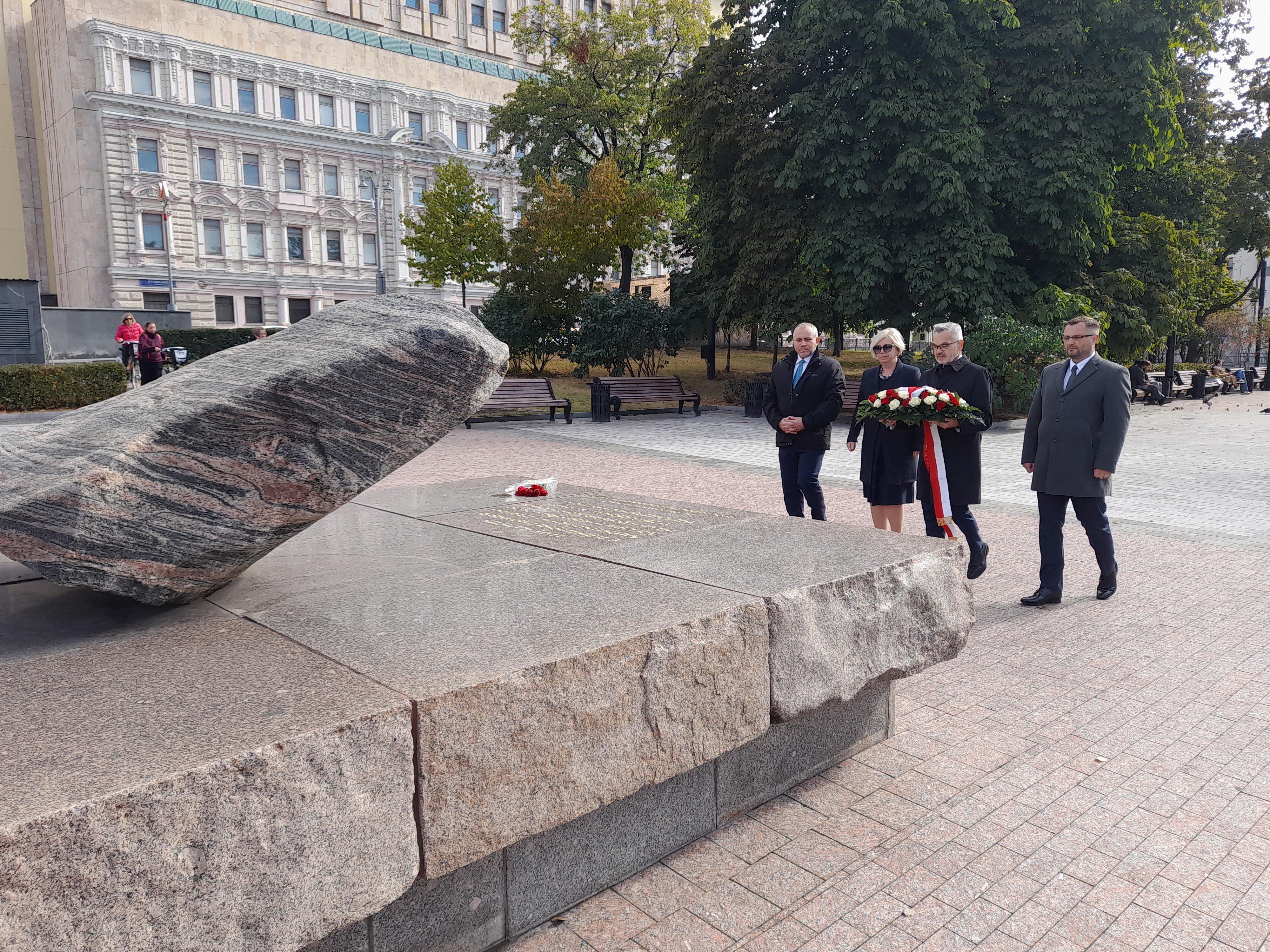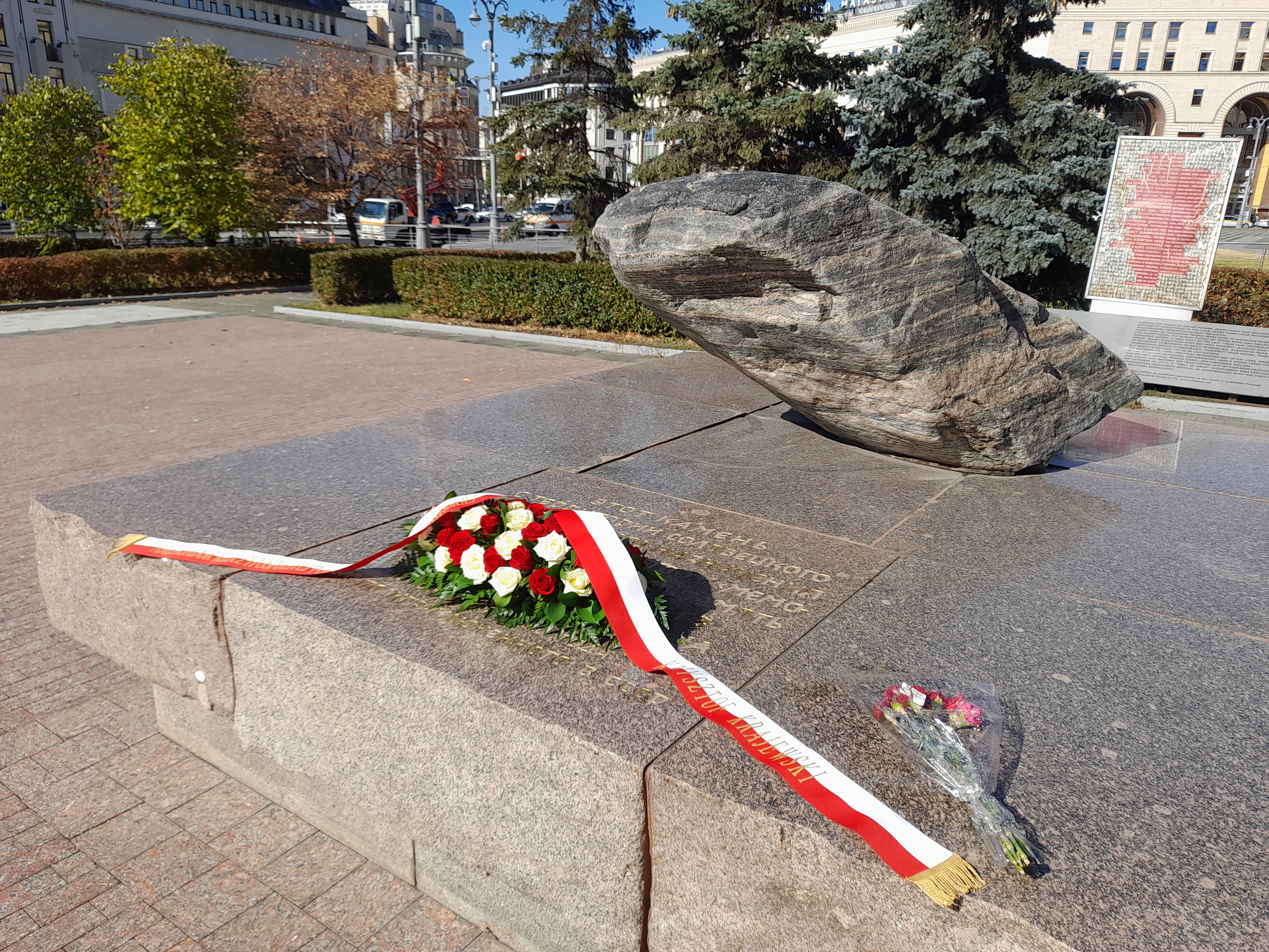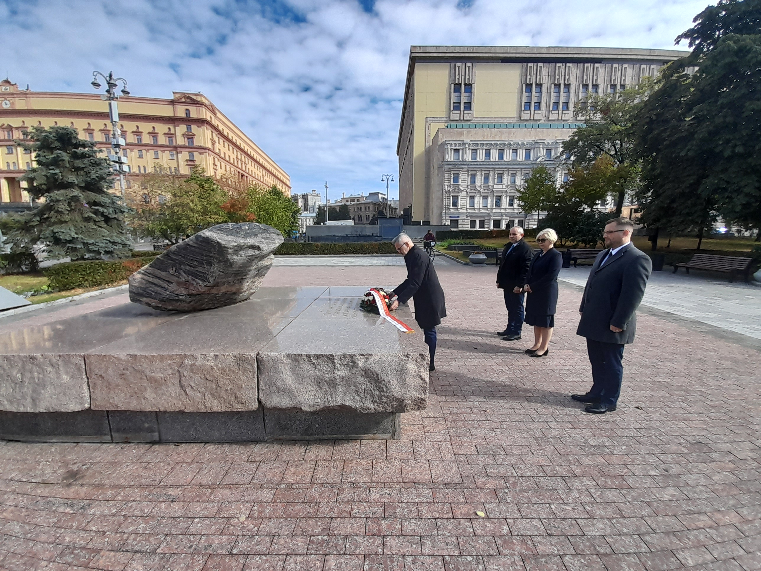 Przed chwilą złożyłem kwiaty pod Kamieniem Sołowieckim, który został przywieziony z Wysp Sołowieckich, miejsca kaźni przeciwników systemu sowieckiego.