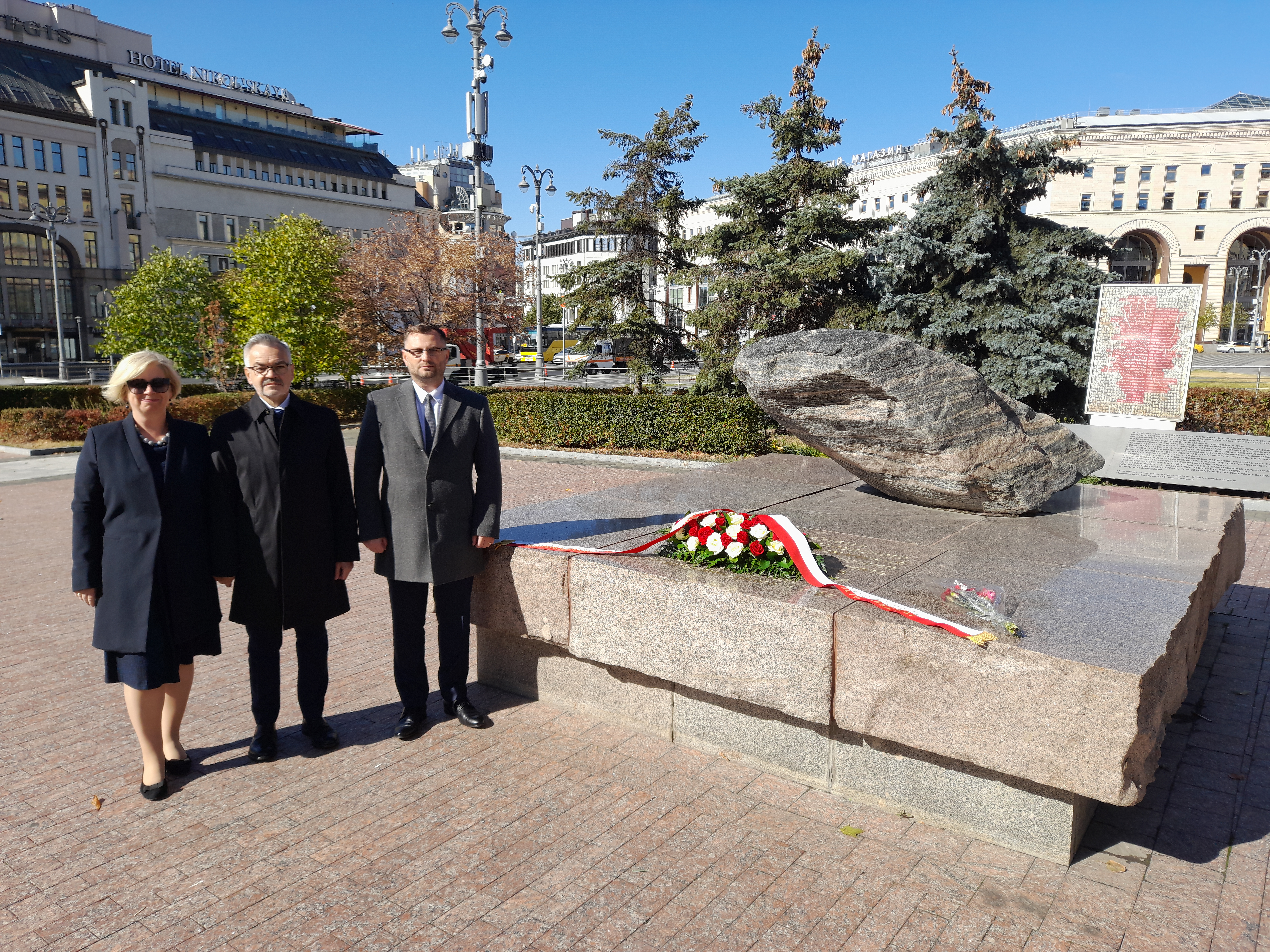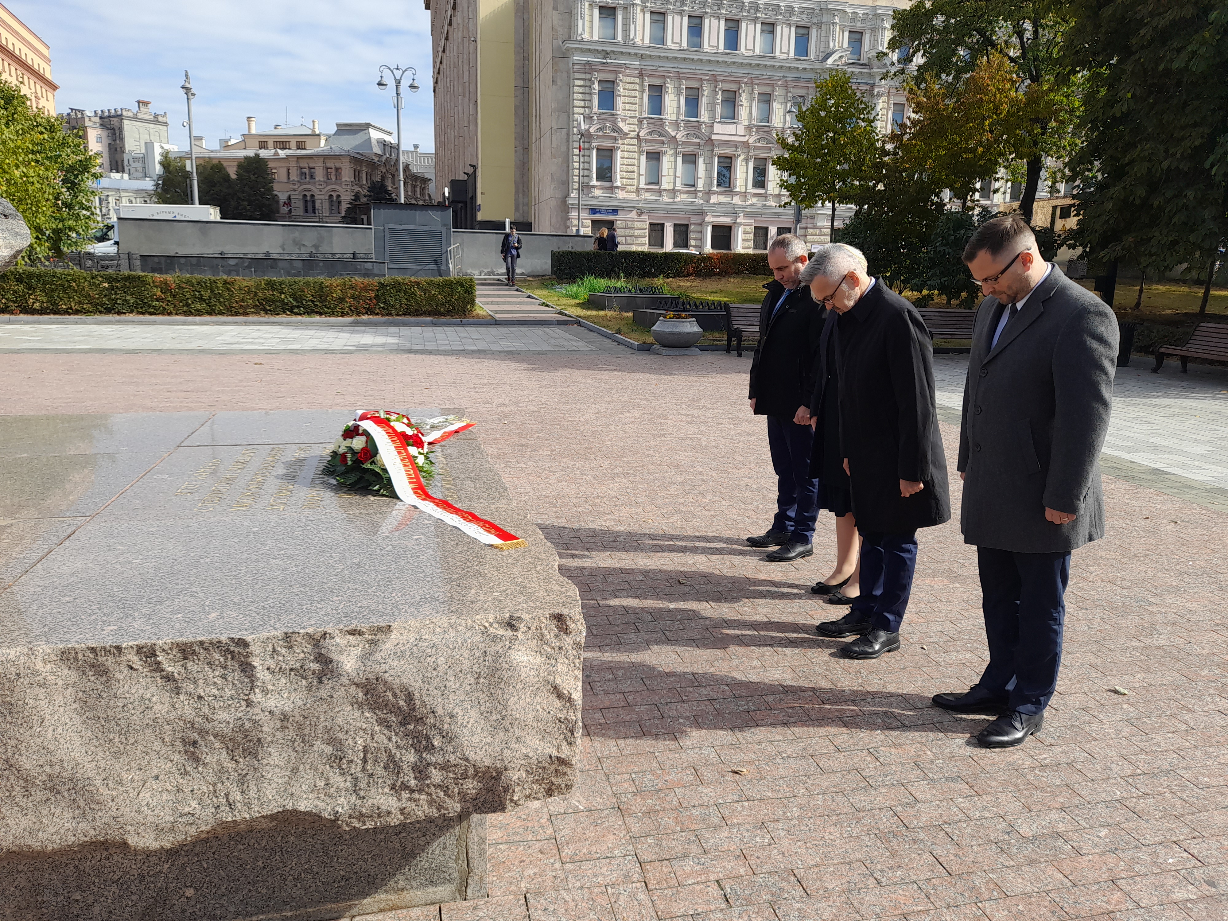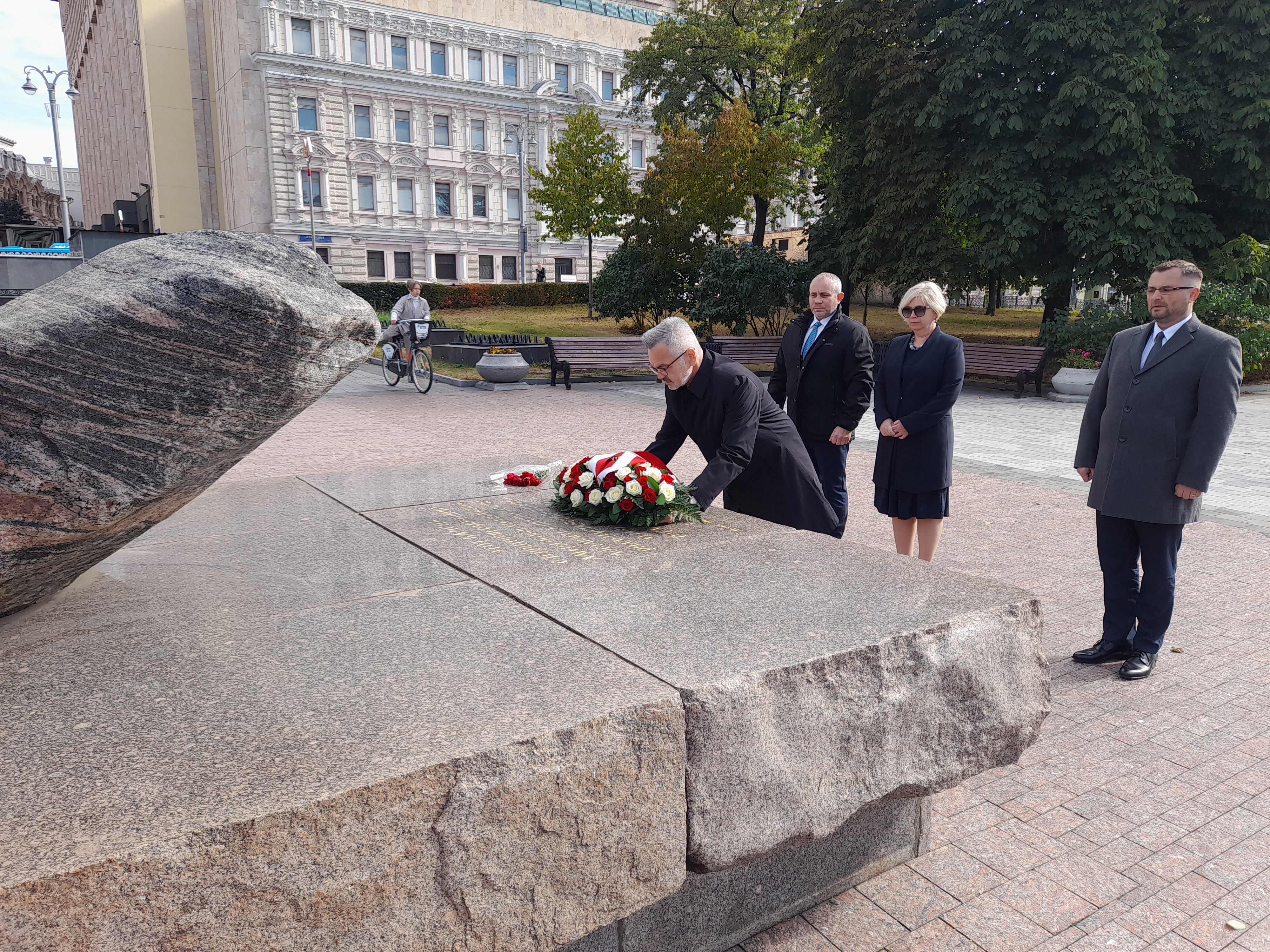Przed chwilą złożyłem kwiaty pod Kamieniem Sołowieckim, który został przywieziony z Wysp Sołowieckich, miejsca kaźni przeciwników systemu sowieckiego.