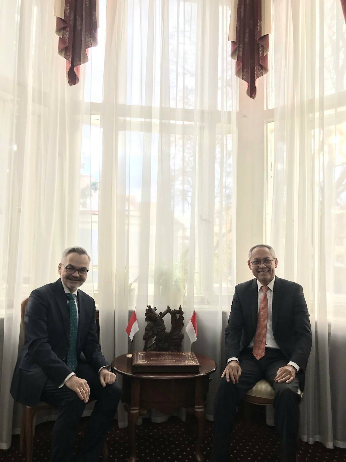 31.10. Ambasador Krzysztof Krajewski spotkał się z Ambasadorem Republiki Indonezji Jose Antonio Morato Tavares. 31.10.2022 Bardzo interesująca rozmowa! Zdjęcia (2) Pokaż zdjęcie 1 z galerii. Pokaż zdjęcie 2 z galerii.