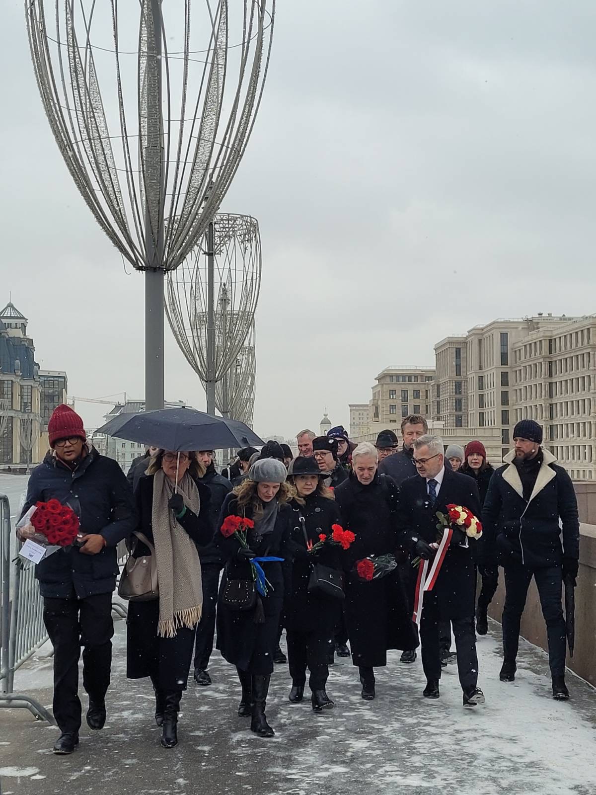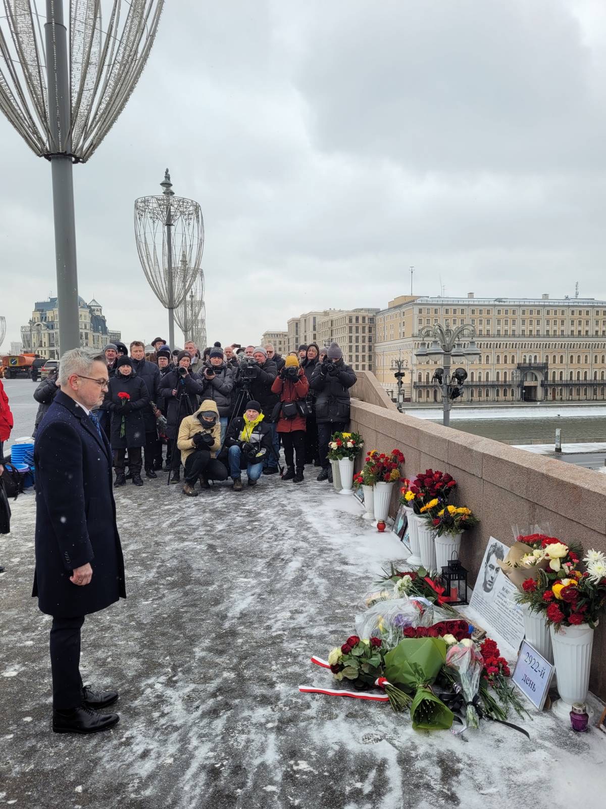 Ambasador Rzeczypospolitej Polskiej w Federacji Rosyjskiej Krzysztof Krajewski wspólnie z ambasadorami państw UE, NATO i like-minded złożył kwiaty na Wielkim Moście Moskworeckim - w miejscu tragicznej śmierci rosyjskiego opozycjonisty.
