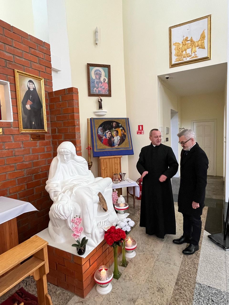 W kościele pw. Przemienienia Pańskiego w Twerze delegacja złożyła kwiaty oraz zapaliła znicze w kaplicy upamiętniającej ofiary wydarzeń z 1940 r. oraz wysłuchała krótkiego koncertu skrzypcowego.