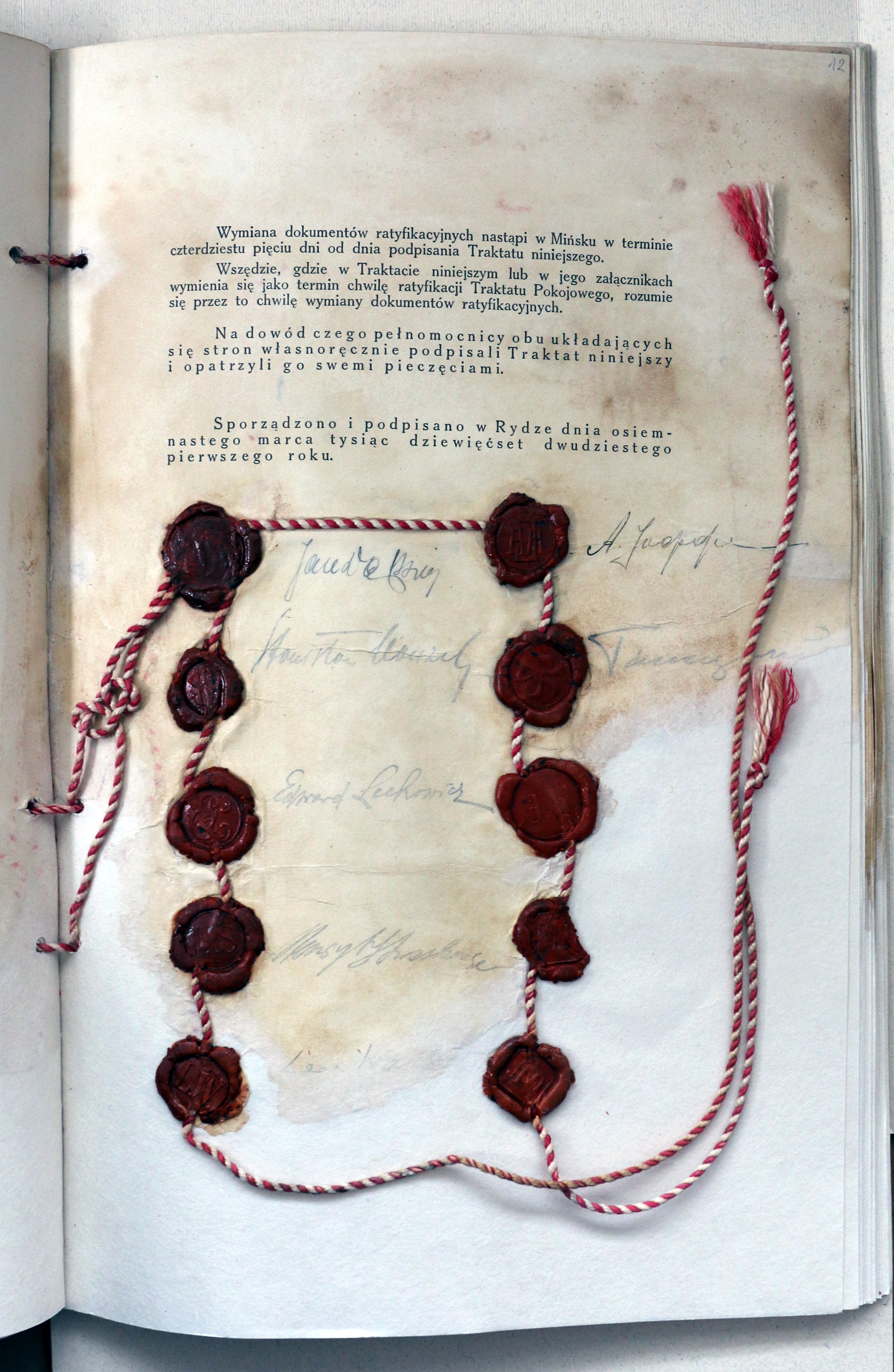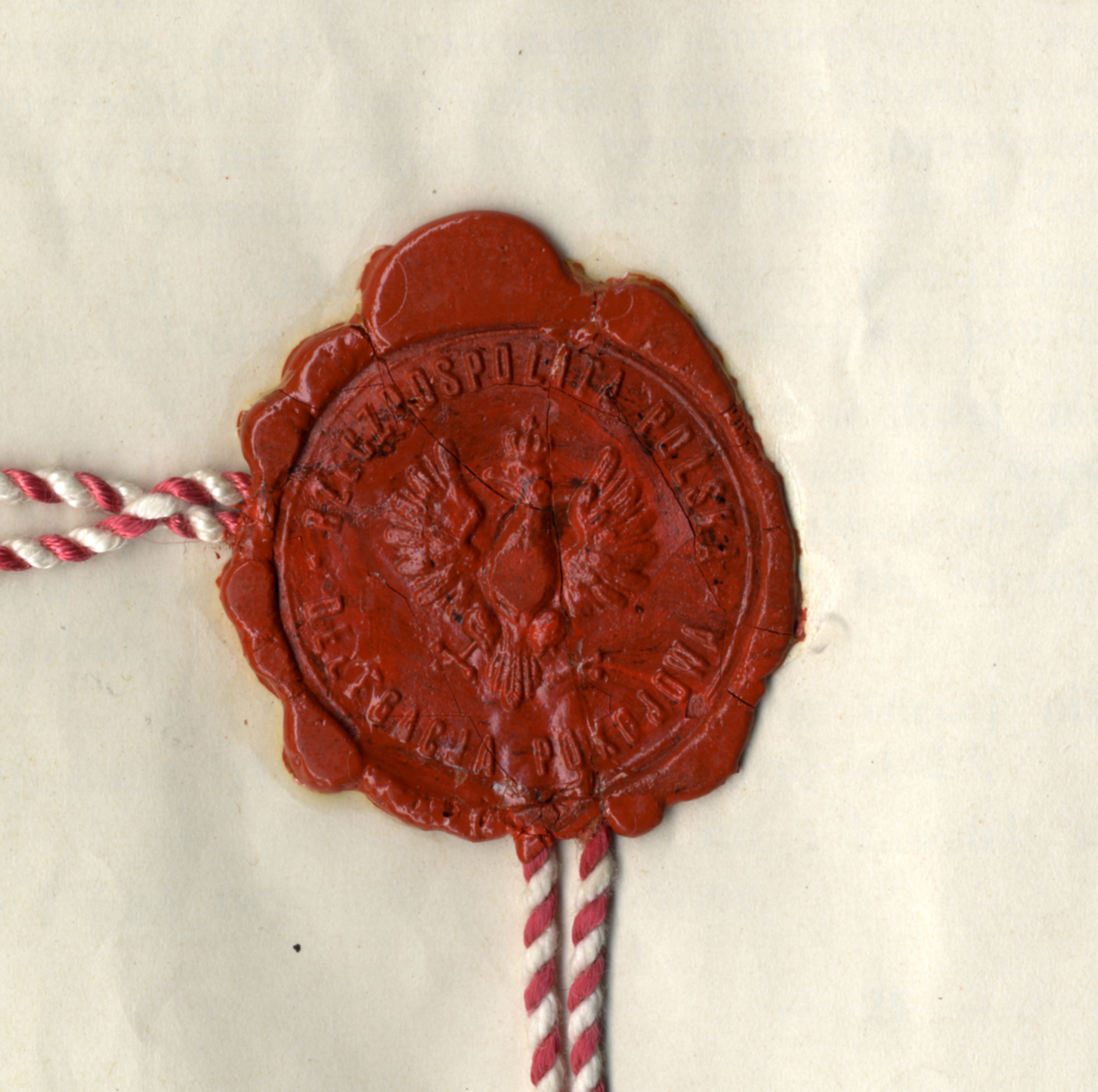 - Pieczęć lakowa delegacji pokojowej Rzeczypospolitej Polskiej odciśnięta pod kopią traktatu ryskiego (AMSZ).