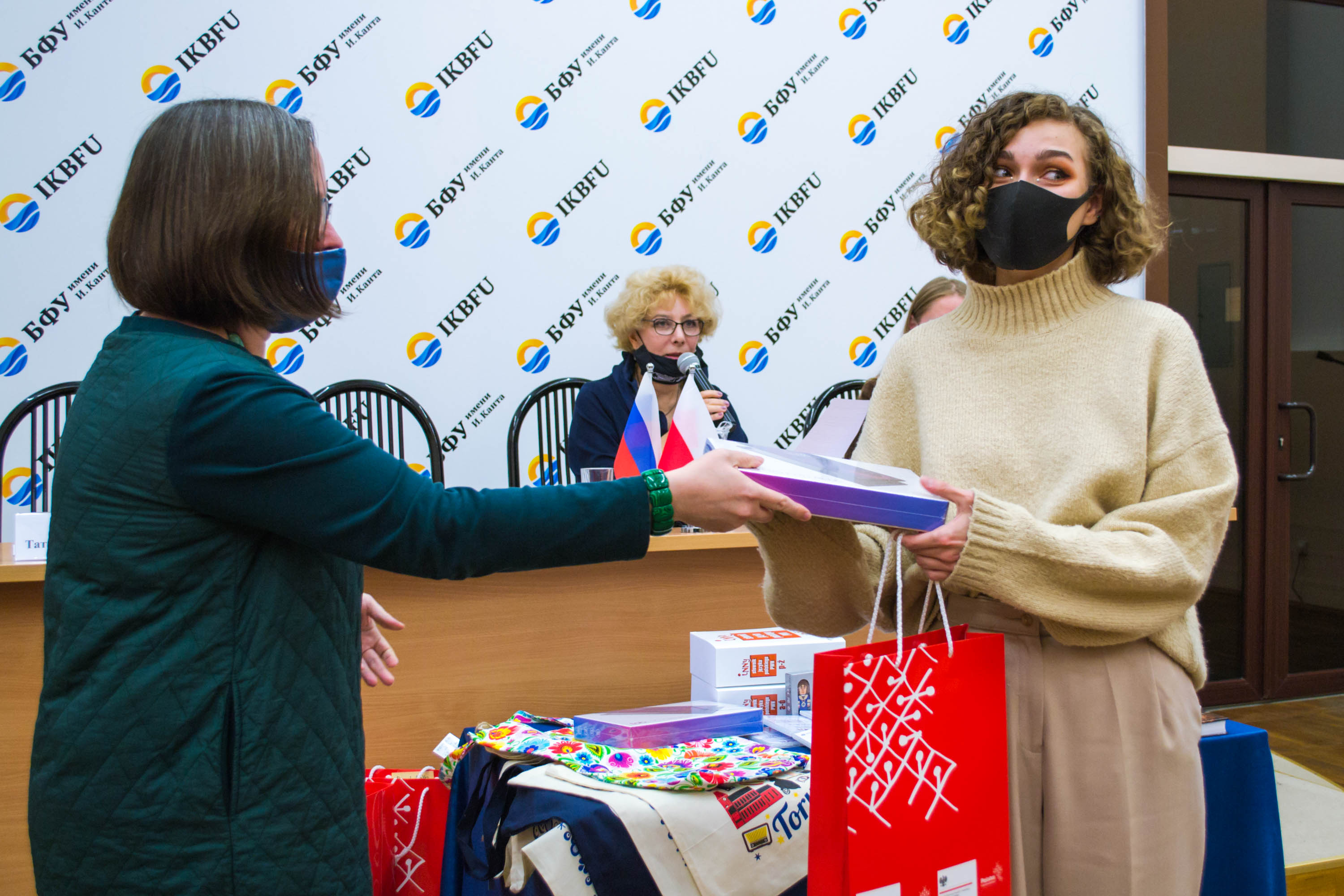 Ze względu na atrakcyjne nagrody, m.in. tablety, albumy malarstwa polskiego, najwięcej emocji wzbudziło ogłoszenie wyników konkursu krasomówczego „Paint Talks”. Atrakcją wieczoru było spotkanie z polską malarką najmłodszego pokolenia, panią Katarzyną Karpowicz. To prezentacja jej twórczości przyniosła studentce IKBFU zwycięstwo w konkursie krasomówczym.