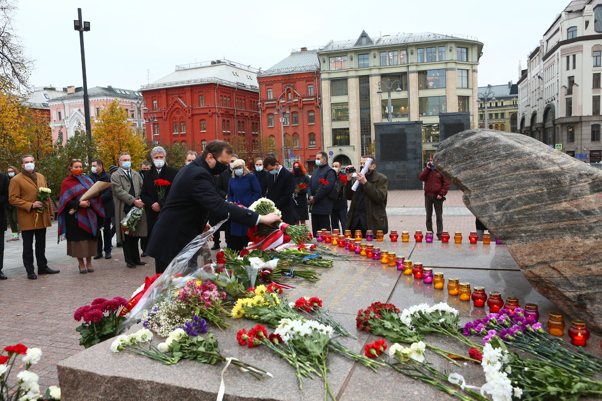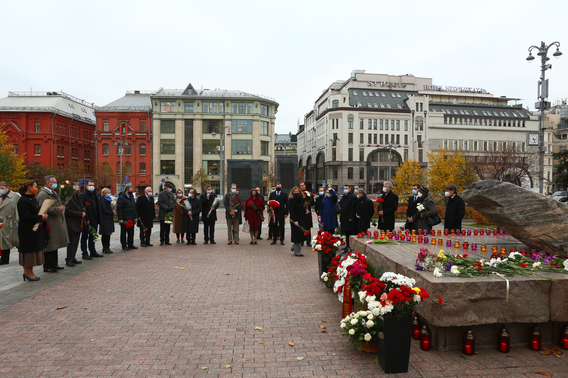 29 października w Moskwie przedstawiciel Ambasady RP w Moskwie wspólnie z delegacją przedstawicieli innych placówek dyplomatycznych państw członkowskich Unii Europejskiej oraz USA, Kanady, Wielkiej Brytanii, Norwegii, Szwajcarii i Australii upamiętnił ofiary represji politycznych i złożył kwiaty przy Kamieniu Sołowieckim na Placu Łubiańskim. W tym roku z powodu ograniczeń związanych z epidemią COVID-19 doroczna akcja społeczna „Przywracania imion”, w której mieszkańcy Moskwy i innych rosyjskich miast czytają imiona osób represjonowanych oraz rozstrzelanych w czasach ZSRR odbyła się online. Chargé d’affaires Ambasady RP w Moskwie Jacek Śladewski wziął udział do przedsięwzięciu.