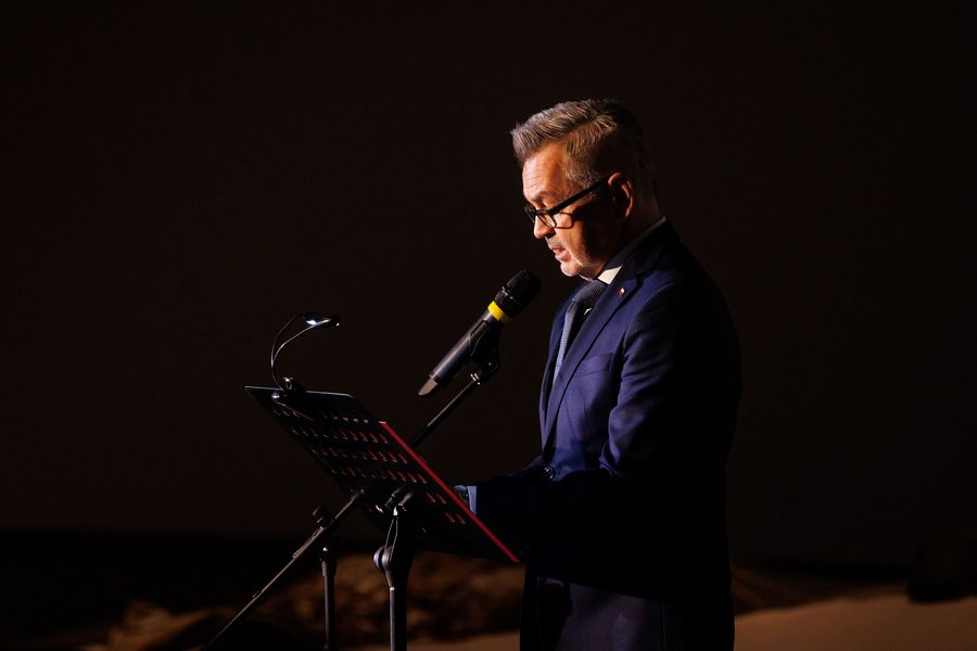 Ambasador wygłosił okolicznościowe przemówienie, w którym odniósł się do słów ocalałego z obozu Mariana Turskiego: „Bądźcie wierni przykazaniu. Jedenaste przykazanie: nie bądź obojętny, bo jeżeli nie, to się nawet nie obejrzycie jak na was, jak na waszych potomków, "jakieś Auschwitz" nagle spadnie z nieba”