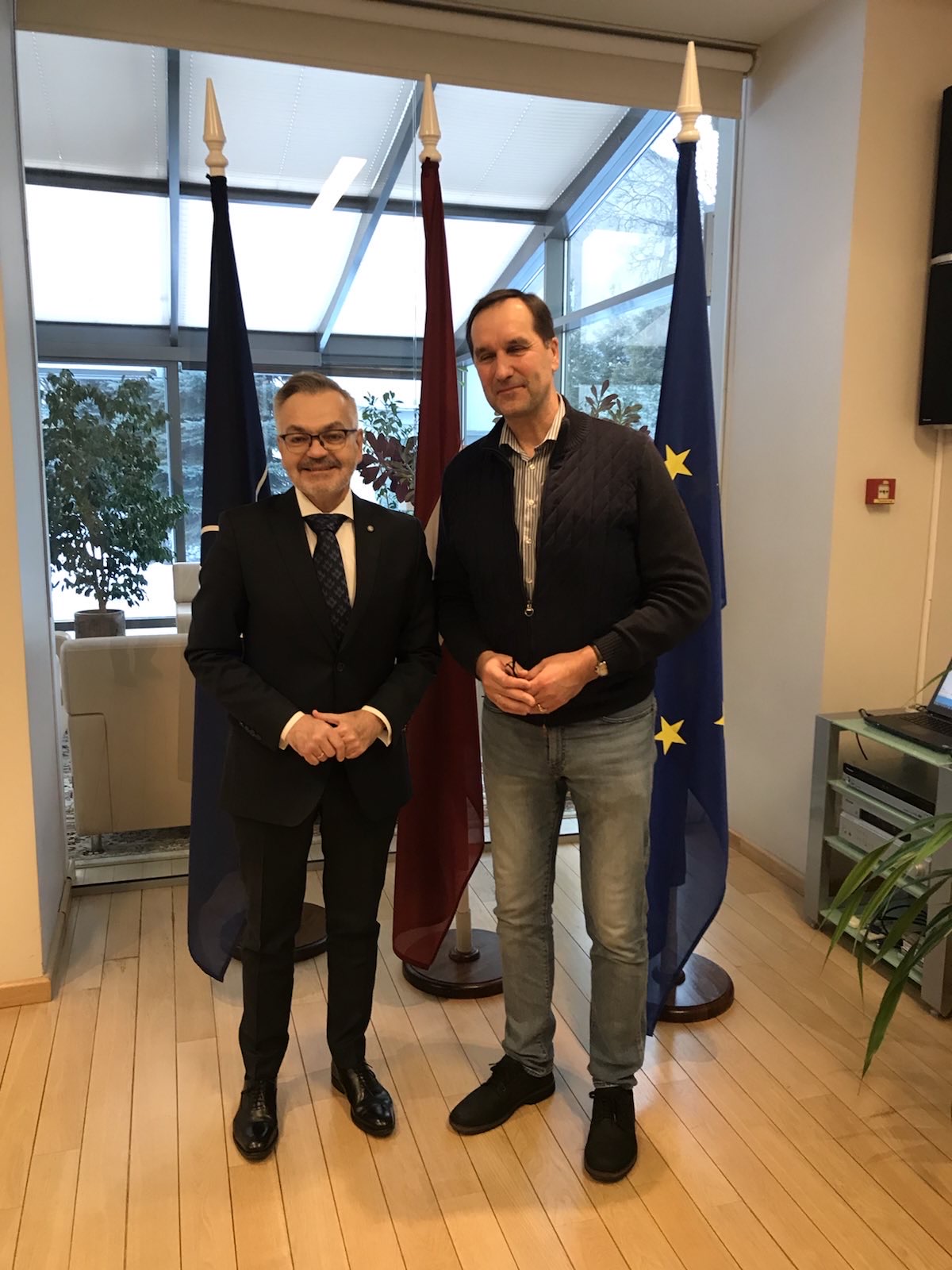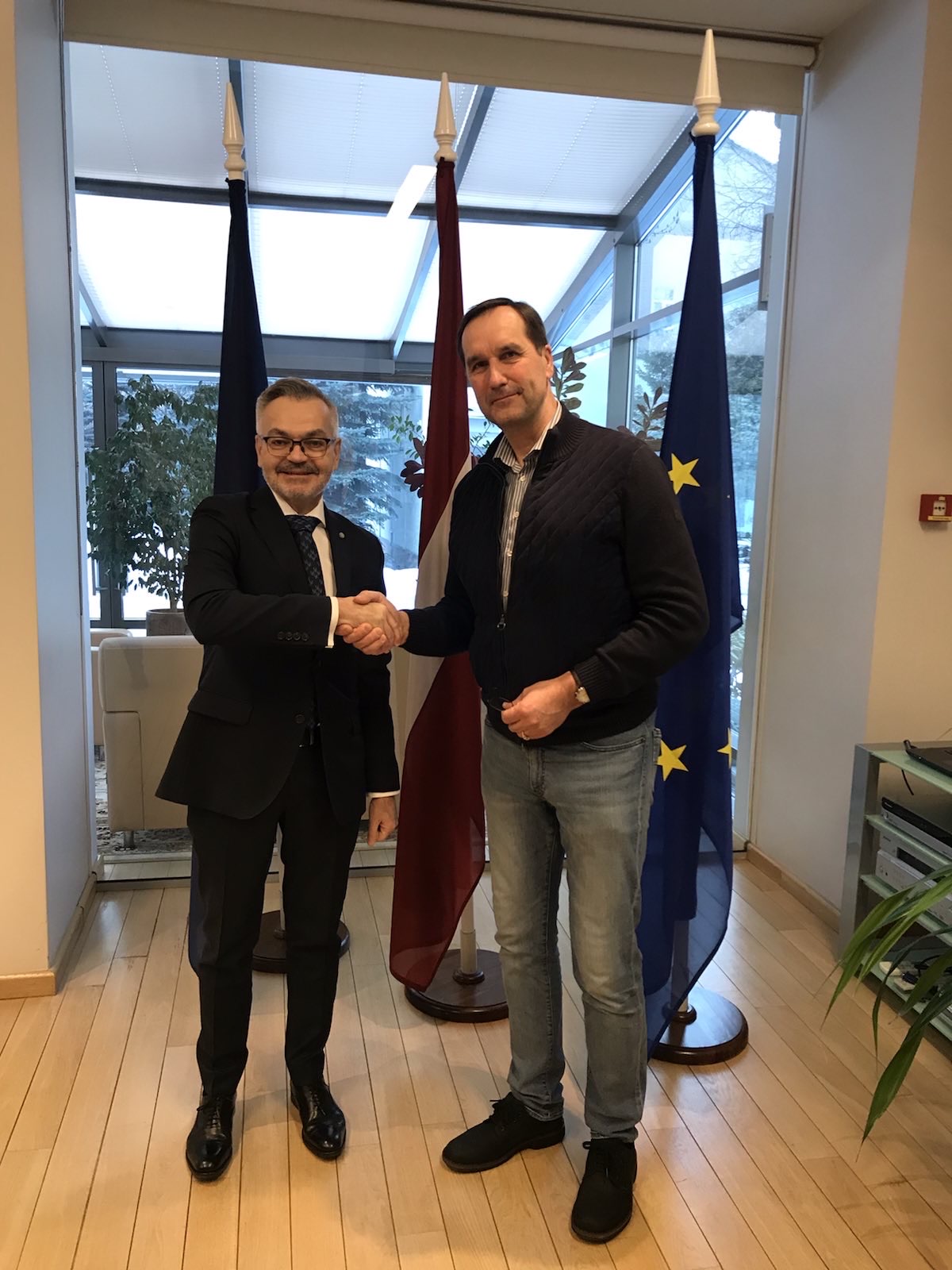 Smutny koniec tygodnia. 10 bm. rano Ambasador Krzysztof Krajewski odwiedził Ambasadę Łotwy i pożegnał tuż przed wyjazdem do Rygi serdecznego Przyjaciela Ambasadora Marisa Riekstinsa, który zakończył misję w Rosji.